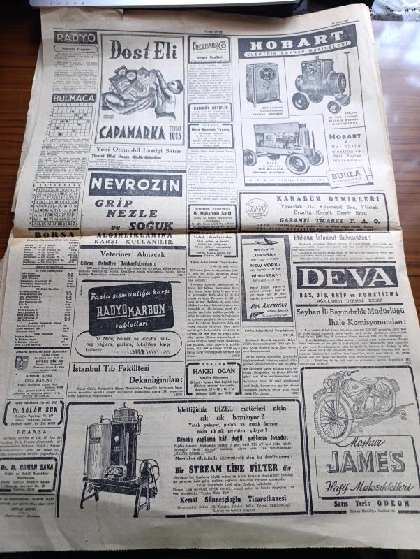 Cumhuriyet Gazetesi - 18 Nisan 1947 - Çekilmek Çekilmemek Yazan Nadir Nadi Başmakale - Yardım Projesi Ayanda Salıya Rey Konuyor - Hasan Ali Yücel Kenan Öner Davası Başladı - Milli Kalkınma Partisi Gene Faaliyete Geçti - Ankara Valisi İzzeddin Çağpar Aleyhine Açılan Dava - Türk Milliyetçiliğinin Karakter Ve İstikameti Ne Olmalıdır - Unkapanı Davası Sanıkları Mahkeme Huzurunda Fotoğrafı - Gençliğin Darülacezeye Yardımı - İzmir At Yarışlarının Dördüncü Hafta Programı - Bekri Mustafa Fıkraları Yarın Çıkıyor - Şehir Dram Tiyatrosunda Köyde Bir Ay Piyesi - Adak Yazan Kemal Ragıp Yazı Dizisi - Büyük İtiraf Filmi Eser Haluk Tanju Reji Refik Kemal - Güreşçilerimiz Prag'da Hava Meydanında - Hobart Elektrik Kaynak Makineleri - Çapamarka - Bugünkü Radyo Programı - Borsa - Meşhur James Hafif Motosikletleri adlı eser, Kitap > Süreli Yayınlar > Gazeteler > Türkiye > Genel > Günlük kategorisinde İkinci El olarak satıştadır.