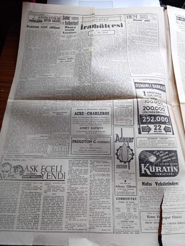 Cumhuriyet Gazetesi - 18 Ocak 1960 - İsmet İnönü Adnan Menderes'e Sert Bir Cevap Verdi - Kıbrıs Konferansında Gelişme Kaydediliyor - Yeni Deniz Yedek Subayları Fotoğrafı - Şemseddin Günaltay Protesto Edildi - Atıf Topaloğlu'nun Gezisi Üzerine Başbakan Adnan Menderes'e Gönderilen Mektuplar - Ordu Takımı Birleşik Arap Cumhuriyeti İle 1 1 Berabere Kaldı Fotoğraf - Adana CHP İl Kongresinde Kasım Gülek İle Kemal Satır Barıştılar - Roma Olimpiyatları Nasıl Hazırlanıyor Röportajı Yapan Arslan Tufan Yazman - Küçük Peyk'in Büyük Gazası Yazan Cemalettin Saraçoğlu Yazı Dizisi - İran Bütçesi Yazan Hasan Ali Yücel Köşe Yazısı - Taş Bebek Filmi Başrolde Gönül Yazar Göksel Arsoy Münir Özkul Atlas Sinemasında - Ocağın Ortasında Yazan Burhan Felek Köşe Yazısı - Çin'de Sarı Nehir Üzerinde 46 Baraj Kuruluyor - Resimli Roman Bir Çiçekle Yaz Olmaz Yazan ve Çizen Salih Erimez - Galatasaray Lucerne'i Dün 3 1 Mağlup Etti - Beşiktaş Altay'ı Da Yenemedi - Metin Oktay 3 Gol Attı - Spartak 4 Takviyeli Demirspor 4 adlı eser, Kitap > Süreli Yayınlar > Gazeteler > Türkiye > Genel > Günlük kategorisinde İkinci El olarak satıştadır.