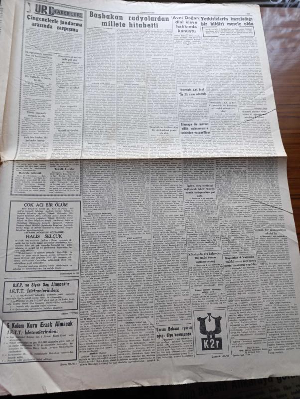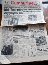 Cumhuriyet Gazetesi - 18 Ocak 1962 - Başbakan İsmet İnönü Demokrasiden Vazgeçilmeyecek Dedi - Bir İki Yıl Geri Bırakılsa Yazan Nadir Nadi Köşe Yazısı - Dominikte İktidarı Dün Bir Sivil Askeri Cunta Ele Aldı - Ragıp Gümüşpala Adalet Partisi Ve CHP Gericilik Ve Komünizmi Tenkil Edecektir Dedi - Kayseri'de 4 Yassıada Mahkumuna Dün Geniş Çapta Tezahürat Yapıldı - Erguvan Ağacı Yazan A. J. Cronin Yazı Dizisi - Soğuk Algınlığına Karşı Vicks - Tiyatro Cüneyt Gökçer Ne Diyor Yazan Lütfi Ay - Devlet İşleri Yazan Burhan Felek Köşe Yazısı - Mussolini'nin Oğlu İle Sophia Loren'in Kız Kardeşi Üç Mart'ta Evleniyorlar - İstatistikler Fransız Halkının Brigitte Bardot'tan Bıktığını Söylüyor - Bay Oscar Karikatür - İstanbul'un Taşı Toprağı Yazan Orhan Kemal Yazı Dizisi - Bugünkü Radyo Programı - Dolmabahçe Stadına Nihayet Dün Işıklandırma Direklerinin İlki Dikildi - İstanbul Kız Lisesi Voleybolda Şampiyon - Fenerbahçe Beşiktaş Rövanşı Oynuyorlar - Gripin adlı eser, Kitap > Süreli Yayınlar > Gazeteler > Türkiye > Genel > Günlük kategorisinde İkinci El olarak satıştadır.