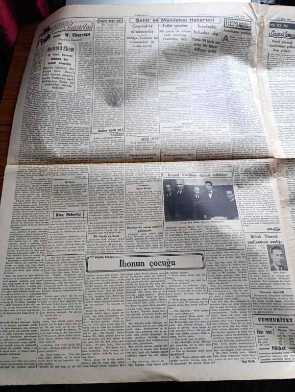 Cumhuriyet Gazetesi - 18 Şubat 1941 - Yeni Türk Bulgar Anlaşması İmzalandı - İki Hükümet Taarruzdan İçtinab Kararında Mutabık Kaldılar - Nihai Safhaya Giren Libya Harekatından En Yeni Resimler - Hariciye Vekilimiz Şükrü Saracoğlu - Gondar'a Taarruz Başladı - İngiltere Mağlup Edilemez - Singapur Ve Malaya Harp Vaziyetinde - Büyük Muasırlar Yazan Winston Churchill Yazı Dizisi - Küçük Hikaye İbo'nun Çocuğu Yazan Nuri Refik - Yeni Tramvay Hatları - Surpagop Mezarlığında Yapılacak Mahalle - Türk Kültürleri Ve Türkiye Kültürü Yazan İsmail Hami Danişmend - Kızıl Vazo Yazan Peride Celal Yazı Dizisi - Sessiz Tayyare Yazan Burhan Felek Köşe Yazısı - Libya Muzafferiyetinden Resimler - Senenin En Büyük Aşk Ve Macera Şaheseri Yeşil Cehennem Sümer Sinemasında - Bakir Adam Bu Perşembe Lale Sinemasında - Siera Radyosu - İsviçre'nin Presizyon Saati Marvin - Galata Perşembe Pazarı - Singer Yeni Spor Saatleri Geldi adlı eser, Kitap > Süreli Yayınlar > Gazeteler > Türkiye > Genel > Günlük kategorisinde İkinci El olarak satıştadır.