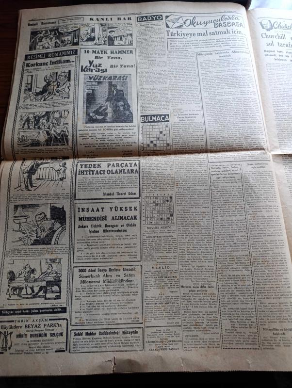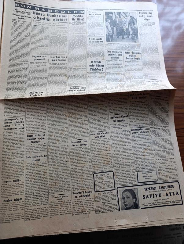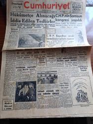 Cumhuriyet Gazetesi - 19 Ağustos 1955 - iktisadi emniyet yazan Feridun Ergin Başmakale - hükümetçe alınacağı iddia edilen tedbirler - CHP'nin Samsun kongresi yapıldı - dünkü yağmur esnasında bankalar caddesi fotoğraf - CHP Fuat köprülü'ye cevap vermek için toplantı yapıyor - Suriye'nin yeni cumhurbaşkanı Şükrü El Kuvvetli - Celal Bayar ve Irak Kralı çeşme'de - Son Hıçkırık yazan Kerime Nadir Yazı Dizisi - dev anasıyla keloğlan yazan Va Nü - Dünya Bankası'nın çıkardığı güçlük - Kore'de kızıllar Bir Amerikan uçağını düşürdüler - neden İstanbul değil de Constantinople - bugünkü radyo programı - churchill'in gölgesi yazan W. H. Thompson yazı dizisi - Haldun Dormen tiyatrosu - bugüne kadar yapılan filmlerin En pahalısı Büyük İskender - İstanbul enternasyonal tenis turnuvası bugün başlıyor - Fenerbahçe basketbolcuları yugoslavya'ya gidiyor - Vefa ilk hazırlık maçını Yavuz Sultan Selim ile yapacak - Lale Oraloğlu puro tuvalet sabunu kullanıyor - Kovo Satış Programı - Papa Eftim'den telgraf adlı eser, Kitap > Süreli Yayınlar > Gazeteler > Türkiye > Genel > Günlük kategorisinde İkinci El olarak satıştadır.