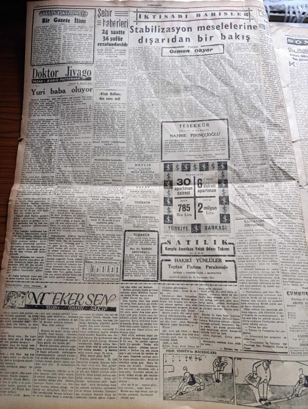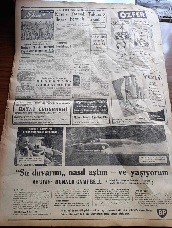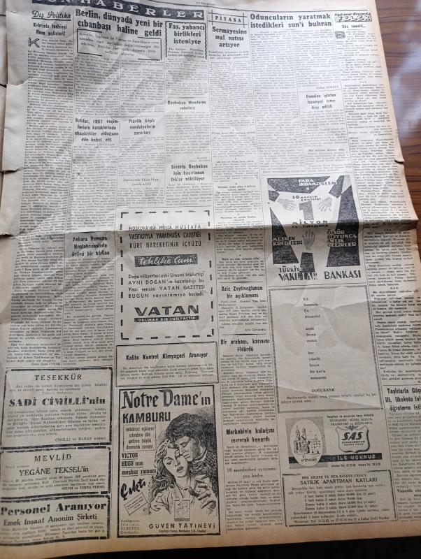 Cumhuriyet Gazetesi - 19 Kasım 1958 - Atatürk'ü Ebedi Uykusuna Daldığı Dakikaları Gösteren Bu Resmi Akil Muhtar Çizmiştir - İsmet İnönü Dün Güçbirliğinin Temel Fikirlerini Açıkladı - İktidar 1957 Seçimlerinin Kütüklerinde Aksaklıklar Olduğunu Dün Kabul etti - Başbakan Adnan Menderes Rahatsız - Kıbrıs'ta EOKA'cı 3 Rum Polisi Yakalandı - Sudanda Memurlar Hükümeti Kuruldu - Danimarka Bize Kredi Açıyor - Doktor Jivago Yazan Boris Pasternak Yazı Dizisi - Ne Ekersen Yazan Ömer Sakıp Yazı Dizisi - Kitap Haftası Dün Sona Erdi - Berlin Dünyada Yeni Bir Çıbanbaşı Haline Geldi - Burhan Felek Köşe Yazısı - - Soprano Leyla Gencer'in Washington'da Yaptığı Basın Toplantısı - İmparator Wilhelm'in Torunu Cumhurbaşkanı Mı Olacak - Kıbrıs'ın Fenerbahçesi Denilen Doğan Türk Birliği Bayraktar Kupasını Aldı - A Ve B Milli Namzetler İlk Antrenmanını Yaptılar - Basri Dirimlili Antrenmana Çıkacaktır - Beşiktaş Real Madrid Maçının Bir Dakikası 55 Kuruş - Hayat Cehennemi Filmi Başrolde Belgin Doruk, Yunus Nadi tarafından kaleme alınmıştır. Cumhuriyet Gazetesi - 19 Kasım 1958 - Atatürk'ü Ebedi Uykusuna Daldığı Dakikaları Gösteren Bu Resmi Akil Muhtar Çizmiştir - İsmet İnönü Dün Güçbirliğinin Temel Fikirlerini Açıkladı - İktidar 1957 Seçimlerinin Kütüklerinde Aksaklıklar Olduğunu Dün Kabul etti - Başbakan Adnan Menderes Rahatsız - Kıbrıs'ta EOKA'cı 3 Rum Polisi Yakalandı - Sudanda Memurlar Hükümeti Kuruldu - Danimarka Bize Kredi Açıyor - Doktor Jivago Yazan Boris Pasternak Yazı Dizisi - Ne Ekersen Yazan Ömer Sakıp Yazı Dizisi - Kitap Haftası Dün Sona Erdi - Berlin Dünyada Yeni Bir Çıbanbaşı Haline Geldi - Burhan Felek Köşe Yazısı - - Soprano Leyla Gencer'in Washington'da Yaptığı Basın Toplantısı - İmparator Wilhelm'in Torunu Cumhurbaşkanı Mı Olacak - Kıbrıs'ın Fenerbahçesi Denilen Doğan Türk Birliği Bayraktar Kupasını Aldı - A Ve B Milli Namzetler İlk Antrenmanını Yaptılar - Basri Dirimlili Antrenmana Çıkacaktır - Beşiktaş Real Madrid Maçının Bir Dakikası 55 Kuruş - Hayat Cehennemi Filmi Başrolde Belgin Doruk adlı eser Türkçe dilindedir.