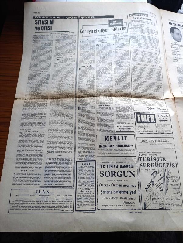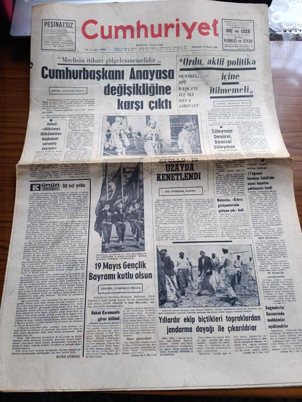 Cumhuriyet Gazetesi - 19 Mayıs 1969 - 50. Yılda Yazan Ecvet Güresin Başmakale - Cumhurbaşkanı Cevdet Sunay Anayasa Değişikliğine Karşı Çıktı - Süleyman Demirel MİT Başkanı Korgeneral Fuat Doğu İle İki Defa Görüştü - Süleyman Demirel Demirel Süleyman Yazan Fikret Otyam - 17 Öğrenci Kuruluşu İsmet İnönü'nün Siyasi Hayattan Çekilmesini İstedi - Makarios Kıbrıs Görüşmelerinde Gelişme Yok Dedi - 19 Mayıs Gençlik Bayramı Kutlu Olsun Fotoğraf - Yarım Yüzyıl Sonra Yazan İlhan Selçuk Köşe Yazısı - Komünist Çin'le Kuzey Kore'nin Arası Açılmış - Kuzey Vietnam Nixon Planını Reddediyor - Cumhuriyet Devrinde Gericilik Hareketlerinden Birkaç Örnek Yazan Kemal Zeki Gençosman - Üç Kağıtçı Yazan Orhan Kemal Yazı Dizisi - Padişah Buyruğundan Halk İradesine Yazan Şükran Soner Yazı Dizisi - Saçsız Baş Tarihe Karışıyor - Galatasaray Mersin'e Takıldı Şampiyonluk Turu Atamadı Fotoğrafı - Beşiktaş Gençlerbirliğini Zor Yendi Fotoğraf - 19 Mayıs Maratonu Bugün Koşuluyor - Spor Toto Sonuçları - İsmail Akçay adlı eser, Kitap > Süreli Yayınlar > Gazeteler > Türkiye > Genel > Günlük kategorisinde İkinci El olarak satıştadır.