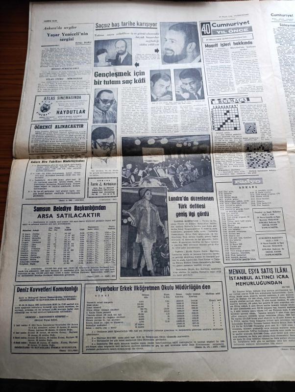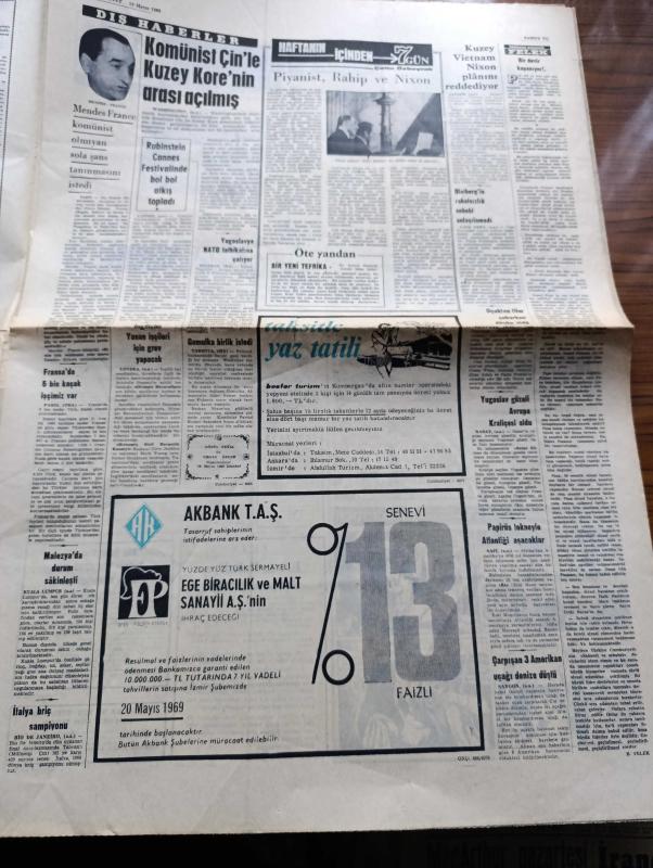 Cumhuriyet Gazetesi - 19 Mayıs 1969 - 50. Yılda Yazan Ecvet Güresin Başmakale - Cumhurbaşkanı Cevdet Sunay Anayasa Değişikliğine Karşı Çıktı - Süleyman Demirel MİT Başkanı Korgeneral Fuat Doğu İle İki Defa Görüştü - Süleyman Demirel Demirel Süleyman Yazan Fikret Otyam - 17 Öğrenci Kuruluşu İsmet İnönü'nün Siyasi Hayattan Çekilmesini İstedi - Makarios Kıbrıs Görüşmelerinde Gelişme Yok Dedi - 19 Mayıs Gençlik Bayramı Kutlu Olsun Fotoğraf - Yarım Yüzyıl Sonra Yazan İlhan Selçuk Köşe Yazısı - Komünist Çin'le Kuzey Kore'nin Arası Açılmış - Kuzey Vietnam Nixon Planını Reddediyor - Cumhuriyet Devrinde Gericilik Hareketlerinden Birkaç Örnek Yazan Kemal Zeki Gençosman - Üç Kağıtçı Yazan Orhan Kemal Yazı Dizisi - Padişah Buyruğundan Halk İradesine Yazan Şükran Soner Yazı Dizisi - Saçsız Baş Tarihe Karışıyor - Galatasaray Mersin'e Takıldı Şampiyonluk Turu Atamadı Fotoğrafı - Beşiktaş Gençlerbirliğini Zor Yendi Fotoğraf - 19 Mayıs Maratonu Bugün Koşuluyor - Spor Toto Sonuçları - İsmail Akçay, Yunus Nadi tarafından kaleme alınmıştır. Cumhuriyet Gazetesi - 19 Mayıs 1969 - 50. Yılda Yazan Ecvet Güresin Başmakale - Cumhurbaşkanı Cevdet Sunay Anayasa Değişikliğine Karşı Çıktı - Süleyman Demirel MİT Başkanı Korgeneral Fuat Doğu İle İki Defa Görüştü - Süleyman Demirel Demirel Süleyman Yazan Fikret Otyam - 17 Öğrenci Kuruluşu İsmet İnönü'nün Siyasi Hayattan Çekilmesini İstedi - Makarios Kıbrıs Görüşmelerinde Gelişme Yok Dedi - 19 Mayıs Gençlik Bayramı Kutlu Olsun Fotoğraf - Yarım Yüzyıl Sonra Yazan İlhan Selçuk Köşe Yazısı - Komünist Çin'le Kuzey Kore'nin Arası Açılmış - Kuzey Vietnam Nixon Planını Reddediyor - Cumhuriyet Devrinde Gericilik Hareketlerinden Birkaç Örnek Yazan Kemal Zeki Gençosman - Üç Kağıtçı Yazan Orhan Kemal Yazı Dizisi - Padişah Buyruğundan Halk İradesine Yazan Şükran Soner Yazı Dizisi - Saçsız Baş Tarihe Karışıyor - Galatasaray Mersin'e Takıldı Şampiyonluk Turu Atamadı Fotoğrafı - Beşiktaş Gençlerbirliğini Zor Yendi Fotoğraf - 19 Mayıs Maratonu Bugün Koşuluyor - Spor Toto Sonuçları - İsmail Akçay adlı eser Türkçe dilindedir.