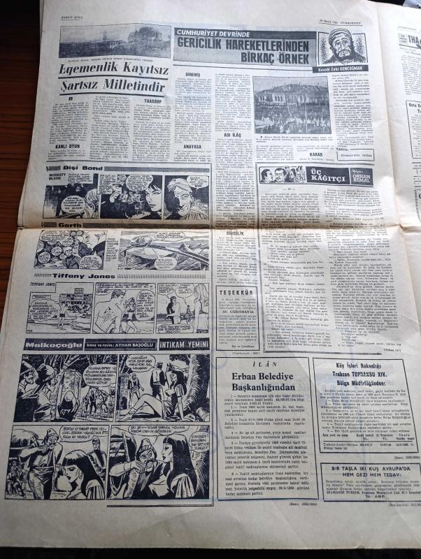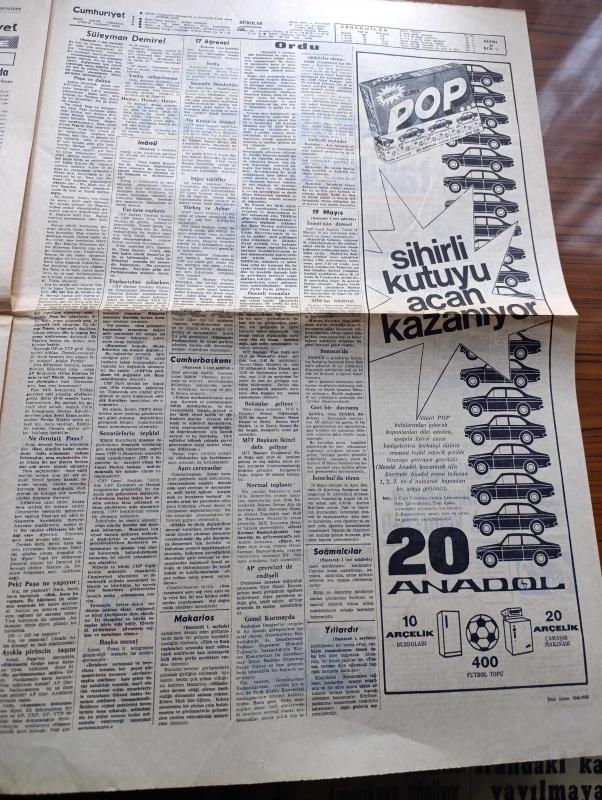 Sayfa Boyutu : 42*58 cm Sayfa Sayısı: 8 Cumhuriyet Gazetesi Yıpranma, sararmalar, kupon kesiği ve yırtılmalar zamana bağlı olarak görülebilir Bilgilendirme : Tam takım gazetedir