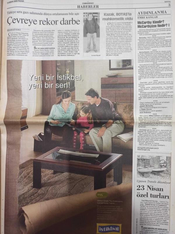 Cumhuriyet Gazetesi - 19 Nisan 2009 - İsmail Çetinkaya - Ali Babacan - Selda Güneysu - Altan Eraslan - Türkan Saylan - Filiz Meriçli - Oya Adalı - Yıpranma, Sararma, Yırtılmalar Zamana Bağlı Olarak Görülebilir.