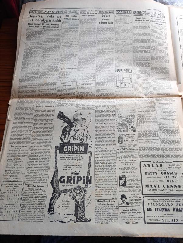 Cumhuriyet Gazetesi - 19 Ocak 1953 - Başbakan'ın Hitabesi Yazan Abidin Daver Başmakale - Başbakan Adnan Menderes Dün Antep'te Yaptığı Mühim Konuşma - Fuat Köprülü Dün Akşam Yugoslavya'ya Gitti Fotoğraf - İngiliz Dışişleri Bakanı Eden'in Türkiye Seyahati - Beşiktaş Vefa İle 1 1 Berabere Kaldı - Kasımpaşa Beykoz Maçı Berabere Bitti Fotoğraf - Turizm Balosunda Şehir Kıyafetleri Fotoğrafı - İran'da Kızardım Kaşani İhtilafı Ciddi Bir Safhaya Girdi - 3 Kadının Romanı Yazan Peride Celal Yazı Dizisi - Revü De Cuba Tepebaşı Gazinosunda - Müşterek Utanç Yazan Burhan Felek Köşe Yazısı - Komünist Partisi İsrail'de Kanundışı Ediliyor - Malatya'da Ahmet Emin Yalman Suikastı İle İlgili Yeni Tevkifler - Malatya Büyük Doğu Cemiyeti - İstanbul Ankara Radyosu Programı - Bedri Rahmi Eyüboğlu Ve Eşi Eren Eyüpoğlu'nun Açtıkları Sergi Fotoğraf - Hikaye Dalga Geçiyoruz Yazan Halikarnas Balıkçısı - Nefis Arı Bisküvileri - Türkiye İş Bankası - Alman Siemens Elektrik Süpürgeleri - Nezle İlacı Enfiyol adlı eser, Kitap > Süreli Yayınlar > Gazeteler > Türkiye > Genel > Günlük kategorisinde İkinci El olarak satıştadır.