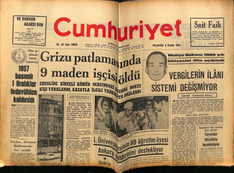 Cumhuriyet Gazetesi 2 Aralık 1965 - 1957 Basımlı Liralar Tedavülden Kaldırıldı GZ78084, en son 22 gün önce güncellenmiştir.