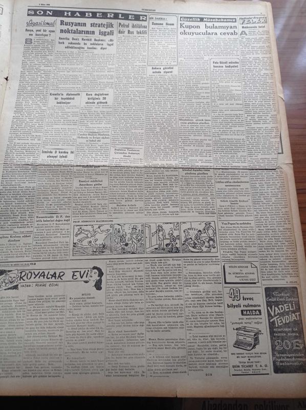 Cumhuriyet Gazetesi - 2 Ekim 1951 - Hava Harb Okulumuz Dün Eskişehir'de Açıldı - Petrol İhtilafına Dair Rus Teklifi - Acı Bir Kayıp Muhiddin Birgeni Kaybettik - Gazeteci Sabri Çakalof Evinde Ölü Bulundu Hadise Esrarla Kaplı - Nadir Nadi - Ankara Güzeli Birsen Demirbaş'ı Evinde Ziyaret - Amerika'nın 1952'de Yapacağı Yardım - Beynelmilel Portreler Amerika'nın Savunma Bakanı Robert Lovett - Tevfik Sadullah - Moris Şövalyenin Gösteri Programı - Türk İtalyan Lunaparkı Adana'ya Naklediliyor - Rüyalar Evi Yazan Peride Celal Yazı Dizisi - Güzellik Müsabakası - Burhan - Yarım Asırlık Bir Teşekkül Süleymaniye Gençlik Kulübü - Uluslararası Güreş Kongresi - Dün Gece Üç Tiyatro Birden Perdelerini Açtılar - Perihan Altındağ Sözeri - İlkokullar Dün Açıldı - BTH Otomatik Çamaşır Yıkama Makinesi - Gripin - Puro Tuvalet Sabunları - Radyolin Diş Macunu, Yunus Nadi tarafından kaleme alınmıştır. Cumhuriyet Gazetesi - 2 Ekim 1951 - Hava Harb Okulumuz Dün Eskişehir'de Açıldı - Petrol İhtilafına Dair Rus Teklifi - Acı Bir Kayıp Muhiddin Birgeni Kaybettik - Gazeteci Sabri Çakalof Evinde Ölü Bulundu Hadise Esrarla Kaplı - Nadir Nadi - Ankara Güzeli Birsen Demirbaş'ı Evinde Ziyaret - Amerika'nın 1952'de Yapacağı Yardım - Beynelmilel Portreler Amerika'nın Savunma Bakanı Robert Lovett - Tevfik Sadullah - Moris Şövalyenin Gösteri Programı - Türk İtalyan Lunaparkı Adana'ya Naklediliyor - Rüyalar Evi Yazan Peride Celal Yazı Dizisi - Güzellik Müsabakası - Burhan - Yarım Asırlık Bir Teşekkül Süleymaniye Gençlik Kulübü - Uluslararası Güreş Kongresi - Dün Gece Üç Tiyatro Birden Perdelerini Açtılar - Perihan Altındağ Sözeri - İlkokullar Dün Açıldı - BTH Otomatik Çamaşır Yıkama Makinesi - Gripin - Puro Tuvalet Sabunları - Radyolin Diş Macunu adlı eser Türkçe dilindedir.
