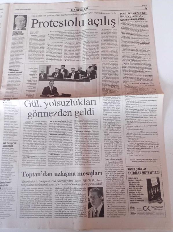 Cumhuriyet Gazetesi - 2 Ekim 2008 - UEFA'da Üç Koldan - Aziz Yıldırım - Lady Diana- Zülfü Livaneli Ve Mikis Thedorakis 21 Yıl Sonra Aynı Sahnede - Metin And Yaşamını Yitirdi - Recep Tayyip Erdoğan'dan Deniz Baykal'a Ret - Altınova'da Gerginlik Sürüyor adlı eser Türkçe dilindedir.