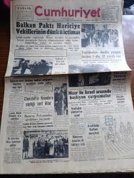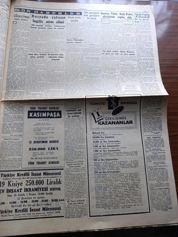 Cumhuriyet Gazetesi - 2 Mart 1955 - Balkan paktı Hariciye vekillerinin dünkü içtimaı - Yeşilırmak ve Kızılırmak ıslah edilecek - Ürdün'e hediye ettiğimiz uçaklar yola çıktı - Aydın'a bir askeri Amerikan uçağı düştü - churchill'in kremlin'e yaptığı sert ihtar - Londra büyükelçimiz Hüseyin Ragıp Baydur'un na'şı getiriliyor - yeşildirekte dünkü yangın faciası 1 ölü 12 yaralı var fotoğraf - Kıbrısa silah sokanlar - Mısır ile İsrail arasında başlayan çarpışmalar - Celal Bayar'ın pakistan'dan ayrılırken beyanatı fotoğraf - Ali Ulvi Karikatür - işçilerimize grev hakkı verilmesi etrafındaki tetkikler yazan Esad Tekeli - Üsküdar otobüsleri belediyeye devredildi - atom tankı yapıldı - mart ayı dert ayı yazan Burhan Felek - İstanbul Paris garnizon maçı - Galatasaray'ın 50. Yılı hazırlıkları - vahşi ihtiras filmi lüks sinemasında - avare filmi Çemberlitaş ve Şehzadebaşı yeni sinemalarında - İstanbul Belediyesi Şehir Tiyatroları dram kısmında altıncı kat komedi kısmında yelpaze - Gripin adlı eser, Kitap > Süreli Yayınlar > Gazeteler > Türkiye > Genel > Günlük kategorisinde İkinci El olarak satıştadır.