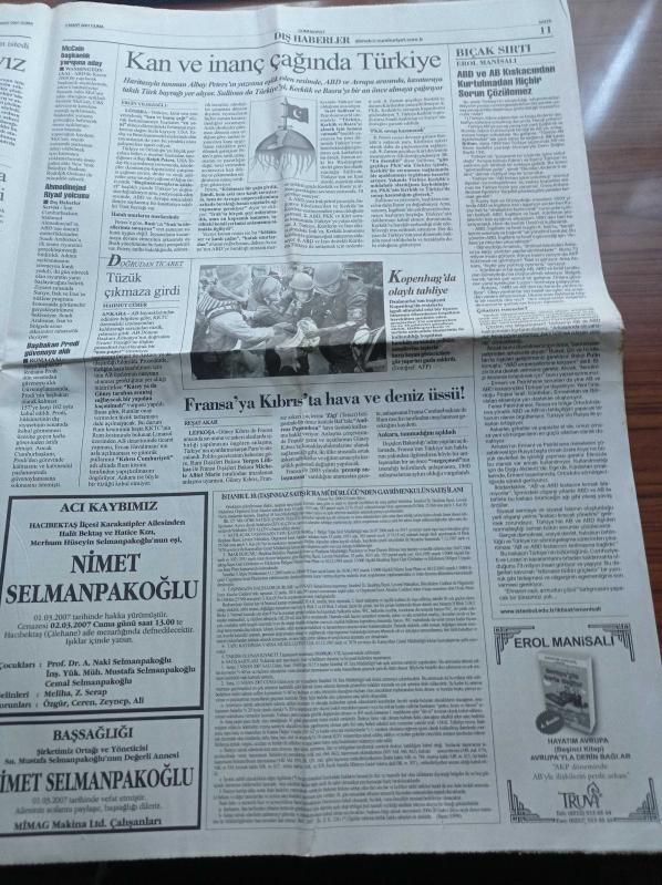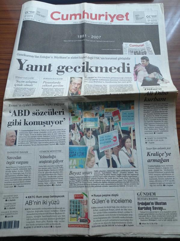 Cumhuriyet Gazetesi - 2 Mart 2007 - Efes Pilsen Direnemedi - Dilara Ali Dibo Kurbanı - Genelkurmay'dan Recep Tayyip Erdoğan'a Yaşar Büyükanıt'ın Sözleri Kişisel Değil TSK'nin Kurumsal Görüşüdür - TÜSİAD'dan Çağrı Seçim Uzlaşma İçinde Olmalı - Kenan Evren'in Eyalet Önerisine Tepki Yağıyor - Sağlık Çalışanları Eylemde - Rusya Peşine Düştü Fethullah Gülen'e İnceleme adlı eser Türkçe dilindedir.