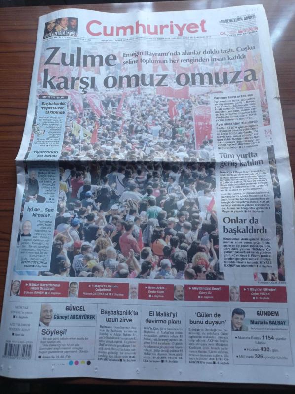 Cumhuriyet Gazetesi - 2 Mayıs 2012 - Federasyona 58 İsyanı - Beşiktaş'a UEFA Affi- Bir HES Cehennemi - NASA Uzay Yolculuğu İçin SNC'yi De Seçti - Emeğin Bayramı 1 Mayıs'ta Alanlar Doldu Taştı - Tiyatrocu Cüneyt Türel Hayatını Kaybetti adlı eser Türkçe dilindedir.