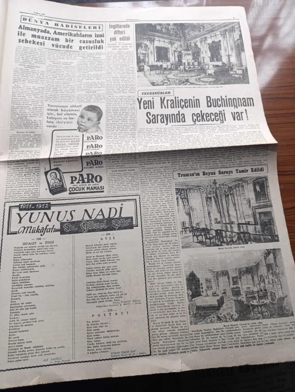 Cumhuriyet Gazetesi - 2 Nisan 1952 - Amerikan Gazetecilerine Stalin'in Verdiği Demeç - Celal Bayar Karabük'e Gitti - 15. Olimpiyat Hazırlıkları - Batı'nın Savunmasında Kaydedilen Terakkiler - Avrupa Birliği Ve Türk Gençliği - Londra'da 1 Nisan Oyunu - 7 Şehir Meclisi Azası Demokrat Parti'nin İl Haysiyet Divanına Verildi - Bir Beyaz Gömleklinin Dramı Yazan Doktor Burhan Öncel Yazı Dizisi - Panaroma Yazan Yakup Kadri Karaosmanoğlu Yazı Dizisi - Burhan Felek Köşe Yazısı - Fransa Olimpiyatlara Kimlerle Gidiyor - Borsa - Kibar Düşkünleri Yazan Maurice Dekobra Yazı Dizisi - Kahramanlar Kalesi Alkazar Sinemasında - Almanya'da Amerikalıların İzni İle Muazzam Bir Casusluk Şebekesi Vücuda Getirildi - Truman'ın Beyaz Sarayı Tamir Edildi - 1951 1952 Yunus Nadi Mükafatı En Güzel Şiir - Server Buzdolabı Gaz Yağı İle İşler - Nestle Chocolat - Gillette Traş Bıçağı - Ali Muhiddin Hacı Bekir - Pan Amerikan - Staalman İsveç Tencereleri - Miller Lastikleri - Cossor Radyoları - Sulfaderme Yanık Kremi, Yunus Nadi tarafından kaleme alınmıştır. Cumhuriyet Gazetesi - 2 Nisan 1952 - Amerikan Gazetecilerine Stalin'in Verdiği Demeç - Celal Bayar Karabük'e Gitti - 15. Olimpiyat Hazırlıkları - Batı'nın Savunmasında Kaydedilen Terakkiler - Avrupa Birliği Ve Türk Gençliği - Londra'da 1 Nisan Oyunu - 7 Şehir Meclisi Azası Demokrat Parti'nin İl Haysiyet Divanına Verildi - Bir Beyaz Gömleklinin Dramı Yazan Doktor Burhan Öncel Yazı Dizisi - Panaroma Yazan Yakup Kadri Karaosmanoğlu Yazı Dizisi - Burhan Felek Köşe Yazısı - Fransa Olimpiyatlara Kimlerle Gidiyor - Borsa - Kibar Düşkünleri Yazan Maurice Dekobra Yazı Dizisi - Kahramanlar Kalesi Alkazar Sinemasında - Almanya'da Amerikalıların İzni İle Muazzam Bir Casusluk Şebekesi Vücuda Getirildi - Truman'ın Beyaz Sarayı Tamir Edildi - 1951 1952 Yunus Nadi Mükafatı En Güzel Şiir - Server Buzdolabı Gaz Yağı İle İşler - Nestle Chocolat - Gillette Traş Bıçağı - Ali Muhiddin Hacı Bekir - Pan Amerikan - Staalman İsveç Tencereleri - Miller Lastikleri - Cossor Radyoları - Sulfaderme Yanık Kremi adlı eser Türkçe dilindedir.