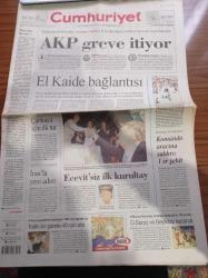 Cumhuriyet Gazetesi - 20 Ağustos 2007 - 43 Yıl Sonra Yine Beşiktaş - Galatasaray Bursa'yı Aştı - Kargıcak Köyünde Antik Kilise Bulundu -Adalet Ve Kalkınma Partisi Greve İtiyor - Bülent Ecevit'siz İlk Kurultay- Atlasjet Uçağı Kaçırılmasında El Kaide Bağlantısı - Doğalgaz Anlaşması - Çankaya İçin İlk Tur adlı eser, Kitap > Süreli Yayınlar > Gazeteler kategorisinde İkinci El olarak satıştadır.