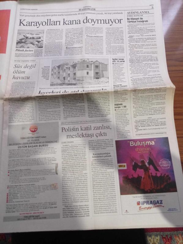 Cumhuriyet Gazetesi - 20 Ağustos 2007 - 43 Yıl Sonra Yine Beşiktaş - Galatasaray Bursa'yı Aştı - Kargıcak Köyünde Antik Kilise Bulundu -Adalet Ve Kalkınma Partisi Greve İtiyor - Bülent Ecevit'siz İlk Kurultay- Atlasjet Uçağı Kaçırılmasında El Kaide Bağlantısı - Doğalgaz Anlaşması - Çankaya İçin İlk Tur adlı eser Türkçe dilindedir.