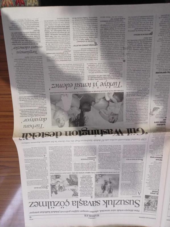 Sayfa Boyutu: 38*56cm Sayfa Sayısı: 18 Cumhuriyet Gazetesi Yıpranma, sararmalar, kupon kesiği ve yırtılmalar zamana bağlı olarak görülebilir