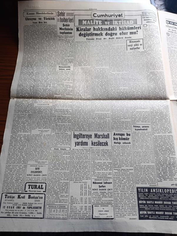 Cumhuriyet Gazetesi - 20 Aralık 1950 - Geç Kaldılar yazan Abidin Daver Başmakale - Eisenhower Atlantik ordusu komutanı oldu - Kore'de Kızıl Çinliler 39. Arz dairesi üzerinde toplandılar arz dairesi üzerinde toplandılar - Kore'de birliğimizin ele geçirdiği Kuzey Koreli kadın ve erkek casuslar fotoğraf - Kore'deki şehit Yaralı ve kayıplarımızı bildiren resmi tebliğ - Kore kahramanları Amerika'nın sesi radyosundan konuşacaklar - Maliye Bakanı Hasan Polatkan'ın bütçeye dair izahatı - cumhurbaşkanı Celal Bayar'ın gazetecilere çay ziyafeti - yeni denizaltılarımız Dün Amerika'dan geldiler fotoğraf - İngiltere'ye Marshall yardımı kesilecek - Karanlık Oda Yazan Peride Celal Yazı Dizisi - Iwo Jima Yanıyor filmi Marmara ve çemberlitaş sinemasında - ahiret yolcuları filmi yurt sinemasında - Amerikalı güreşçiler Yarın uçakla geliyorlar fotoğraflar - Yaşar Doğunun rakibi Louis Heintz fotoğraf - Hamiyet Yüceses ve Ahmet Üstün Taksim kristal salonunda - Türkiye'den kore'dekilere mektup - Sümerbank, Yunus Nadi tarafından kaleme alınmıştır. Cumhuriyet Gazetesi - 20 Aralık 1950 - Geç Kaldılar yazan Abidin Daver Başmakale - Eisenhower Atlantik ordusu komutanı oldu - Kore'de Kızıl Çinliler 39. Arz dairesi üzerinde toplandılar arz dairesi üzerinde toplandılar - Kore'de birliğimizin ele geçirdiği Kuzey Koreli kadın ve erkek casuslar fotoğraf - Kore'deki şehit Yaralı ve kayıplarımızı bildiren resmi tebliğ - Kore kahramanları Amerika'nın sesi radyosundan konuşacaklar - Maliye Bakanı Hasan Polatkan'ın bütçeye dair izahatı - cumhurbaşkanı Celal Bayar'ın gazetecilere çay ziyafeti - yeni denizaltılarımız Dün Amerika'dan geldiler fotoğraf - İngiltere'ye Marshall yardımı kesilecek - Karanlık Oda Yazan Peride Celal Yazı Dizisi - Iwo Jima Yanıyor filmi Marmara ve çemberlitaş sinemasında - ahiret yolcuları filmi yurt sinemasında - Amerikalı güreşçiler Yarın uçakla geliyorlar fotoğraflar - Yaşar Doğunun rakibi Louis Heintz fotoğraf - Hamiyet Yüceses ve Ahmet Üstün Taksim kristal salonunda - Türkiye'den kore'dekilere mektup - Sümerbank adlı eser Türkçe dilindedir.