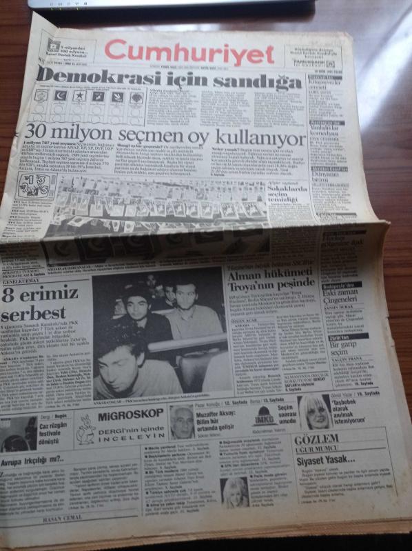 Cumhuriyet Gazetesi - 20 Ekim 1991- Beşiktaş'ı Şifo Mehmet Kurtardı - PKK'nın Kaçırdığı 8 Erimiz Serbest - Muzaffer Aksoy Bilim Hür Ortamda Gelişir - Alman Hükümeti Troya'nın Peşinde - Demokrasi İçin Sandığa - 30 Milyon Seçmen Oy Kullanıyor - Gönül Yazar Taşbebek Olarak Anılmak İstemiyorum adlı eser Türkçe dilindedir.