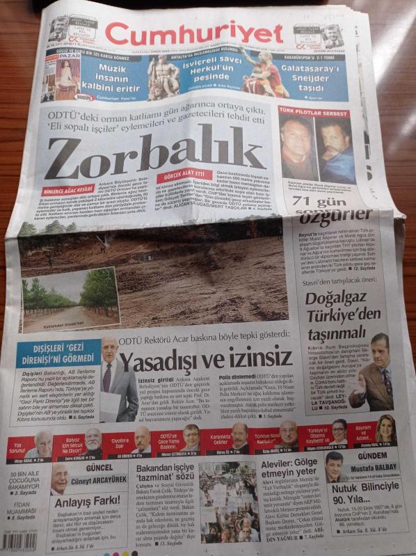 Cumhuriyet Gazetesi - 20 Ekim 2013 - Naim Süleymanoğlu - Avrupalı Fenerbahçe - İsviçreli Savcı Herkül'ün İzinde - Beyrutta Kaçırılan Türk Pilotlar Murat Akpınar Ve Murat Ağca Serbest - Devletin Alevisi Olmayacağız - ODTÜ'deki Orman Katliamı Gün Ağarınca Ortaya Çıktı - Dışişleri Gezi Direnişi'ni Görmedi adlı eser, Kitap > Süreli Yayınlar > Gazeteler kategorisinde İkinci El olarak satıştadır.