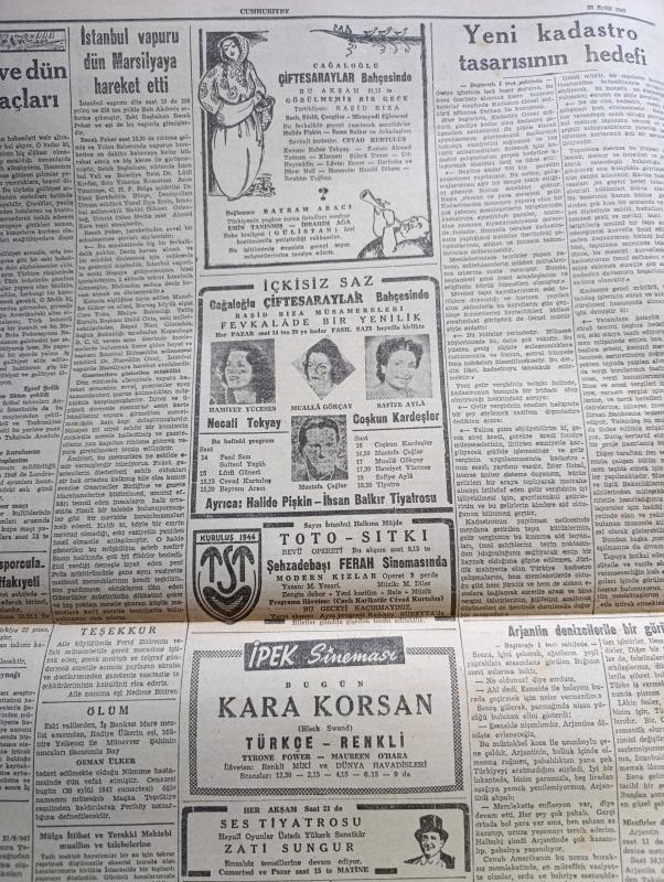 Cumhuriyet Gazetesi - 20 Eylül 1947 - İstanbul Mali Buhrandan Nasıl Kurtarılabilir Yazanlar Abidin Daver Köşe Yazısı - Amerikan Yardımı Memleketimize Sevkiyatını Başlaması İçin Yapılan Hazırlıklar - Sovyet İftiralarına Karşı Cevabımız - Vişinski'nin Nutku Bütün Dünyada Olduğu Gibi Türkiye'de De İnfial Uyandırdı - Hükümet Çevreleri Nutuk İçin Neler Düşünüyorlar - Cumhurbaşkanı İsmet İnönü'nün Seyahati - İran'ın Moskova Büyükelçisi Meydanda Yok - Acı Bir Kaybımız Gazeteci Faik Güneri Vefat Etti - Kayseri Milletvekili Said Azmi Feyzioğlu İçin İleri Sürülen İddialar - Yunanistanda Sporcularımızın Muvaffakiyeti - Beynelmilel Portreler İdamını Bekleyen Bulgar Muhalefet Lideri Petkov - Rüya Gibi Nakleden Hamdi Varoğlu Yazı Dizisi - Maksad Merasim Mi Yazan Burhan Felek Köşe Yazısı - Bugünkü Futbol Ve Dün Geceki Boks Maçları Yazan Eşref Şefik - Askeri Güçler Futbol Takımı Ligden çekildi - Hamiyet Yüceses Mualla Gökçay Ve Safiye Ayla Cağaloğlu Çiftesaraylar Bahçesinde - Revü Opereti - Sihirbaz, Yunus Nadi tarafından kaleme alınmıştır. Cumhuriyet Gazetesi - 20 Eylül 1947 - İstanbul Mali Buhrandan Nasıl Kurtarılabilir Yazanlar Abidin Daver Köşe Yazısı - Amerikan Yardımı Memleketimize Sevkiyatını Başlaması İçin Yapılan Hazırlıklar - Sovyet İftiralarına Karşı Cevabımız - Vişinski'nin Nutku Bütün Dünyada Olduğu Gibi Türkiye'de De İnfial Uyandırdı - Hükümet Çevreleri Nutuk İçin Neler Düşünüyorlar - Cumhurbaşkanı İsmet İnönü'nün Seyahati - İran'ın Moskova Büyükelçisi Meydanda Yok - Acı Bir Kaybımız Gazeteci Faik Güneri Vefat Etti - Kayseri Milletvekili Said Azmi Feyzioğlu İçin İleri Sürülen İddialar - Yunanistanda Sporcularımızın Muvaffakiyeti - Beynelmilel Portreler İdamını Bekleyen Bulgar Muhalefet Lideri Petkov - Rüya Gibi Nakleden Hamdi Varoğlu Yazı Dizisi - Maksad Merasim Mi Yazan Burhan Felek Köşe Yazısı - Bugünkü Futbol Ve Dün Geceki Boks Maçları Yazan Eşref Şefik - Askeri Güçler Futbol Takımı Ligden çekildi - Hamiyet Yüceses Mualla Gökçay Ve Safiye Ayla Cağaloğlu Çiftesaraylar Bahçesinde - Revü Opereti - Sihirbaz adlı eser Türkçe dilindedir.