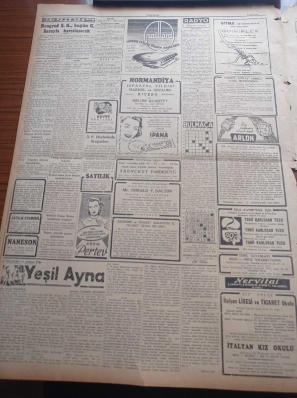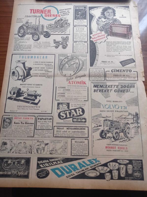 Cumhuriyet Gazetesi - 20 Eylül 1952 - Celal Bayar'ın İnkılabımıza Çorumlulara Veciz Hitabesi - Mareşal Tito Balkanlar Fethedilemez Bir Kale Halini Alıyor - Üçüncü Milletlerarası Basketbol Turnuvası - Amerika Hava Bakanı Finletter Bir Heyetle Birlikte Türkiye'ye Geliyor - Güreş Şampiyonumuz Yaşar Doğu'nun Cesareti - Zabıta Sarıyer Cinayetinin Failini Tesbit Etti - Kasım Gülek Askeri Mahkemeye Çağrıldı - İsmet İnönünün Büstü Tamir Dolasıyla Kaldırılmış - Afganistan Sovyet Notasını Reddetti - Devlet Demiryolları Umum Müdürü Zihni Üner - İpana Diş Macunu - Beograd S.K Takımı Bugün Galatasaray'la Karşılaşacak - Yüzme Şampiyonu Nehirde Boğuldu - Günün Resimleri - Siemens Perihan Altındağ'ın Radyosudur - Turner Diesel Traktörleri - Sabite Tur Gülerman Beyaz Parkta - Volvo T31 Traktör - Atomik Saatleri - Viktorya Dolmakalemleri- Duralex Sofra Takımları Gelmiştir adlı eser, Kitap > Süreli Yayınlar > Gazeteler > Türkiye > Genel > Günlük kategorisinde İkinci El olarak satıştadır.