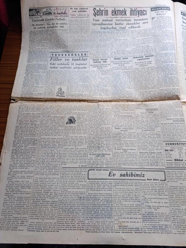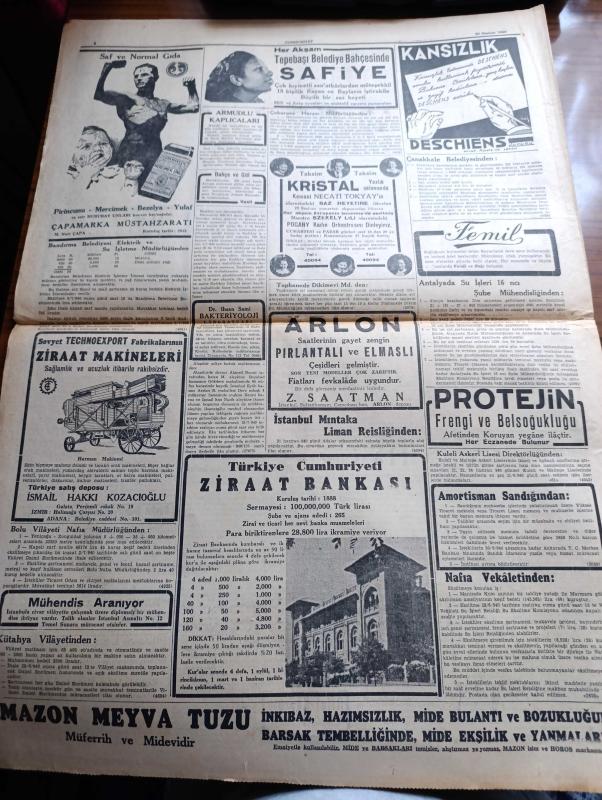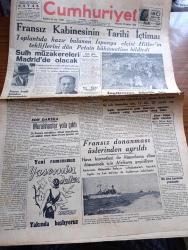 Cumhuriyet Gazetesi - 20 Haziran 1940 - Fransa Kendi Varlığını Kurtaracaktır Yazan Nadir Nadi Başmakale - Fransız Kabinesinin Tarihi İçtimai - Toplantıda Hazır Bulunan İspanya Elçisi Hitler'in Tekliflerini Dün Petain Hükümetine Bildirdi - İngiltere'ye Büyük Bir Hava Hücumu Yapıldı - Üç Fransız Murahhası Alman Murahhası İle Mülaki Olmak Üzere Paris'e Hareket Etti - Fransız Donanması Üslerinden Ayrıldı - Tarihte Türkler Ve İngilizler Yazan Ziya Şakir Yazı Dizisi - İstanbul'un Ekmek İhtiyacı - Türkiye İsviçre Ticaret Anlaşması - Polonyalı Yahudi Mülteciler - Uruguayda Bir Nazi Komplosu Keşfedildi - Aşk Ve Macera Romanı İlk Ve Son Yazan Esad Mahmud Karakurt Yazı Dizisi - Bugünkü Radyo Programı - Sherlock Holmes Filmi Bugünden İtibaren İpek Sinemasında - Brooklyn Kahramanı Lale Sinemasında - Safiye Ayla Her Akşam Tepebaşı Bahçesinde - Çapamarka - Kansızlık İçin Deschiens - Arlon Pırlantalı Ve Elmaslı Saatler - Protejin Frengi Ve Belsoğukluğu İçin - Armutlu Kaplıcaları - Mazon Meyva Tuzu - adlı eser, Kitap > Süreli Yayınlar > Gazeteler > Türkiye > Genel > Günlük kategorisinde İkinci El olarak satıştadır.