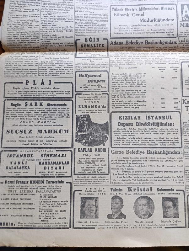 Cumhuriyet Gazetesi - 20 Nisan 1947 - Rusya'ya Karşı Uysal Mı Metin Mi Davranmalı Yazan Abidin Daver Köşe Yazısı - Moskova Konferansında Bir Karar Verilemedi - Hasan Ali Yücel ile Kenan Öner Davası - İzmir Gençliği Komünizm Aleyhinde Miting Yaptı - Senirkent Davasına Devam Edildi - Türk Hekimlerinin En Yaşlısı Doktor Hacı Nuri Canbakan İçin Tören Fotoğraf - Galatasaray İle Vefa Dün Berabere Kaldılar - Bostondaki Maraton Müsabakası - Haftanın Şakaları Yazan Burhan Felek Köşe Yazısı - Fransız İlminin Büyük Bir Kaybı Yazan Profesör Mustafa Şekib Tunç - Tramvaydan Atlamanın Cezası - Adak Yazan Kemal Ragıp Yazı Dizisi - Farsça Türkçe Lügat - Kaplan Kadın Bugün Elhamra'da - Hamiyet Yüceses Salahaddin Pınar Taksim Kristal Salonunda - Suçsuz Mahkum Bugün Şark Sinemasında - Amerika'nın ve Dünyanın En Mükemmel Sinema Cihazı Singlex - Bugünkü Radyo Programı - Bulmaca - Good Year Lastikleri - Derman Kaşeleri, Yunus Nadi tarafından kaleme alınmıştır. Cumhuriyet Gazetesi - 20 Nisan 1947 - Rusya'ya Karşı Uysal Mı Metin Mi Davranmalı Yazan Abidin Daver Köşe Yazısı - Moskova Konferansında Bir Karar Verilemedi - Hasan Ali Yücel ile Kenan Öner Davası - İzmir Gençliği Komünizm Aleyhinde Miting Yaptı - Senirkent Davasına Devam Edildi - Türk Hekimlerinin En Yaşlısı Doktor Hacı Nuri Canbakan İçin Tören Fotoğraf - Galatasaray İle Vefa Dün Berabere Kaldılar - Bostondaki Maraton Müsabakası - Haftanın Şakaları Yazan Burhan Felek Köşe Yazısı - Fransız İlminin Büyük Bir Kaybı Yazan Profesör Mustafa Şekib Tunç - Tramvaydan Atlamanın Cezası - Adak Yazan Kemal Ragıp Yazı Dizisi - Farsça Türkçe Lügat - Kaplan Kadın Bugün Elhamra'da - Hamiyet Yüceses Salahaddin Pınar Taksim Kristal Salonunda - Suçsuz Mahkum Bugün Şark Sinemasında - Amerika'nın ve Dünyanın En Mükemmel Sinema Cihazı Singlex - Bugünkü Radyo Programı - Bulmaca - Good Year Lastikleri - Derman Kaşeleri adlı eser Türkçe dilindedir.