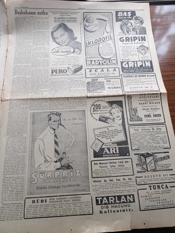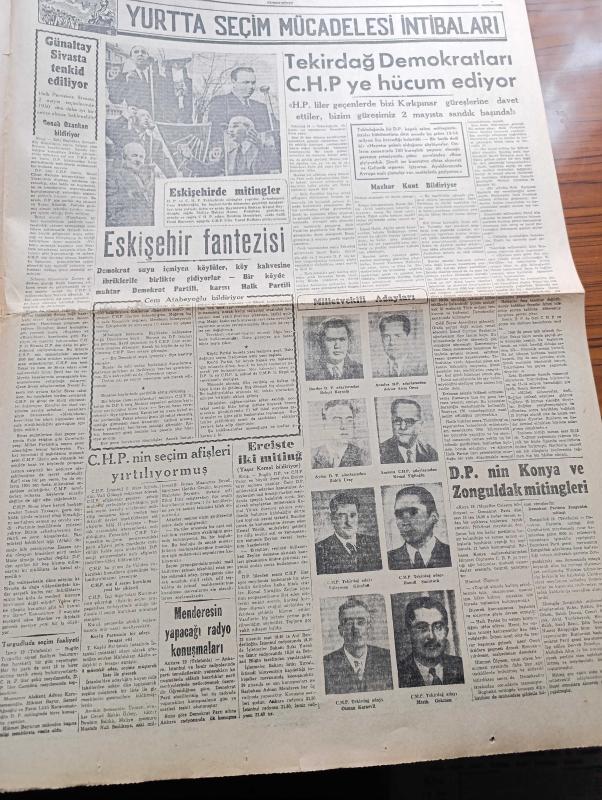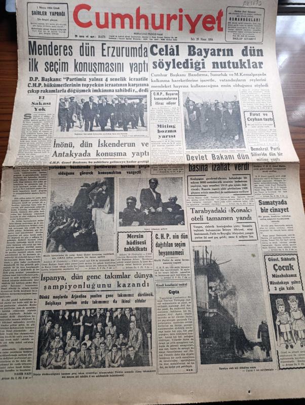 Cumhuriyet Gazetesi - 20 Nisan 1954 - El Şakası Yok Yazan Nadir Nadi Köşe Yazısı - Adnan Menderes Dün Erzurum'da İlköğretim Seçim Konuşmasını Yaptı - İsmet İnönü Dün İskenderun Ve Antakya'da Konuşma Yaptı - İspanya Dün Genç Takımlar Dünya Şampiyonluğunu Kazandı - Miting Bozma Yarışı - Tarabyadaki Konak Oteli Tamamen Yandı - Demokrat Parti Dün Silivri'de Bir Miting Yaptı - 1954 Cannes Sinema Festivali Yazan Aydemir Balkan Yazı Dizisi - İnce Memed Yazan Yaşar Kemal Yazı Dizisi - Laikliği Korumanın Çareleri Yazan Doktor Nurullah Kunter - Resim Ve Sanat Galerisi Dün Törenle Açıldı - Kıbrıs'ta Papazların Faaliyeti Artıyor - Avrupa Birliği Planı - Burhan Felek Köşe Yazısı - İstanbul Ankara Radyosu Programı - Büyük Adli Hatalar Bir Rezalet Çeviren Mazhar Kunt Yazı Dizisi - Yurtta Seçim Mücadelesi İntibaları - CHP'nin Seçim Afişleri Yırtılıyormuş - Adnan Menderes'in Yapacağı Radyo Konuşmaları - Sarayların Aşk İlahesi Desiree Yazan Annemarie Selinko Yazı Dizisi - Lale Oraloğlu, Yunus Nadi tarafından kaleme alınmıştır. Cumhuriyet Gazetesi - 20 Nisan 1954 - El Şakası Yok Yazan Nadir Nadi Köşe Yazısı - Adnan Menderes Dün Erzurum'da İlköğretim Seçim Konuşmasını Yaptı - İsmet İnönü Dün İskenderun Ve Antakya'da Konuşma Yaptı - İspanya Dün Genç Takımlar Dünya Şampiyonluğunu Kazandı - Miting Bozma Yarışı - Tarabyadaki Konak Oteli Tamamen Yandı - Demokrat Parti Dün Silivri'de Bir Miting Yaptı - 1954 Cannes Sinema Festivali Yazan Aydemir Balkan Yazı Dizisi - İnce Memed Yazan Yaşar Kemal Yazı Dizisi - Laikliği Korumanın Çareleri Yazan Doktor Nurullah Kunter - Resim Ve Sanat Galerisi Dün Törenle Açıldı - Kıbrıs'ta Papazların Faaliyeti Artıyor - Avrupa Birliği Planı - Burhan Felek Köşe Yazısı - İstanbul Ankara Radyosu Programı - Büyük Adli Hatalar Bir Rezalet Çeviren Mazhar Kunt Yazı Dizisi - Yurtta Seçim Mücadelesi İntibaları - CHP'nin Seçim Afişleri Yırtılıyormuş - Adnan Menderes'in Yapacağı Radyo Konuşmaları - Sarayların Aşk İlahesi Desiree Yazan Annemarie Selinko Yazı Dizisi - Lale Oraloğlu adlı eser Türkçe dilindedir.