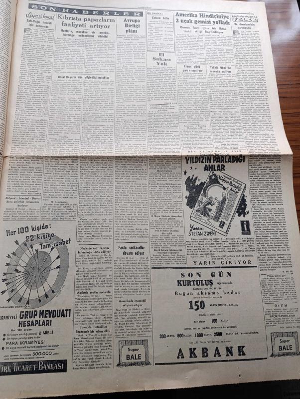 Cumhuriyet Gazetesi - 20 Nisan 1954 - El Şakası Yok Yazan Nadir Nadi Köşe Yazısı - Adnan Menderes Dün Erzurum'da İlköğretim Seçim Konuşmasını Yaptı - İsmet İnönü Dün İskenderun Ve Antakya'da Konuşma Yaptı - İspanya Dün Genç Takımlar Dünya Şampiyonluğunu Kazandı - Miting Bozma Yarışı - Tarabyadaki Konak Oteli Tamamen Yandı - Demokrat Parti Dün Silivri'de Bir Miting Yaptı - 1954 Cannes Sinema Festivali Yazan Aydemir Balkan Yazı Dizisi - İnce Memed Yazan Yaşar Kemal Yazı Dizisi - Laikliği Korumanın Çareleri Yazan Doktor Nurullah Kunter - Resim Ve Sanat Galerisi Dün Törenle Açıldı - Kıbrıs'ta Papazların Faaliyeti Artıyor - Avrupa Birliği Planı - Burhan Felek Köşe Yazısı - İstanbul Ankara Radyosu Programı - Büyük Adli Hatalar Bir Rezalet Çeviren Mazhar Kunt Yazı Dizisi - Yurtta Seçim Mücadelesi İntibaları - CHP'nin Seçim Afişleri Yırtılıyormuş - Adnan Menderes'in Yapacağı Radyo Konuşmaları - Sarayların Aşk İlahesi Desiree Yazan Annemarie Selinko Yazı Dizisi - Lale Oraloğlu adlı eser, Kitap > Süreli Yayınlar > Gazeteler > Türkiye > Genel > Günlük kategorisinde İkinci El olarak satıştadır.