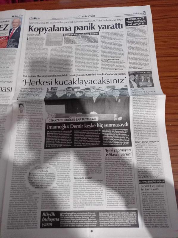 Cumhuriyet Gazetesi - 20 Nisan 2019- Lucescu Beşiktaş'ın Listesinde - Fenerbahçe Galatasaray Derbisi Berabere- CHP Lideri Kemal Kılıçdaroğlu İptal De Kaos Da Olmaz - Soma Tahliyesine Tepki - Oktay Akbal'ı Doğum Gününde Anıyoruz - Adalet Nöbeti Ankara'da - Recep Tayyip Erdoğan Ekrem İmamoğlu'nun Elini Sıkmadı adlı eser Türkçe dilindedir.