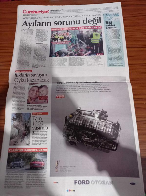 Sayfa Boyutu: 38*56cm Sayfa Sayısı: 16 Cumhuriyet Gazetesi Yıpranma, sararmalar, kupon kesiği ve yırtılmalar zamana bağlı olarak görülebilir
