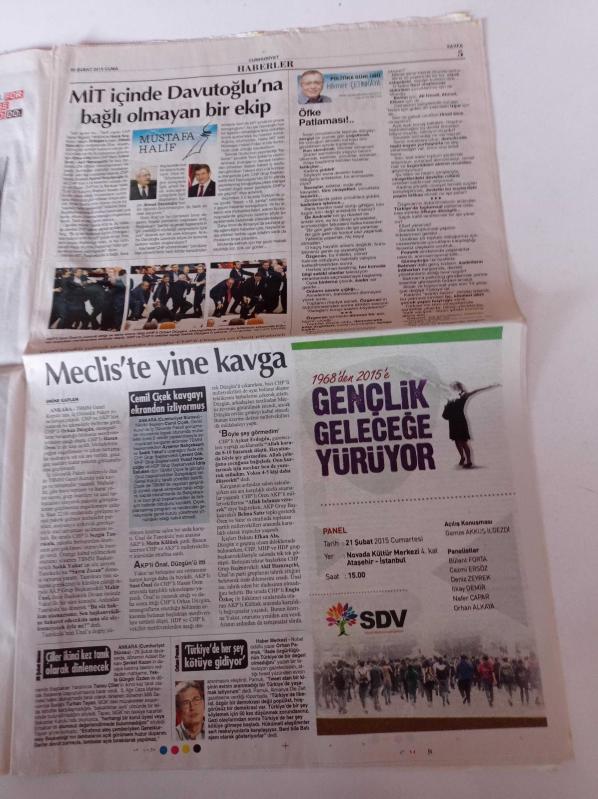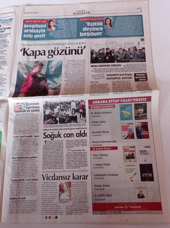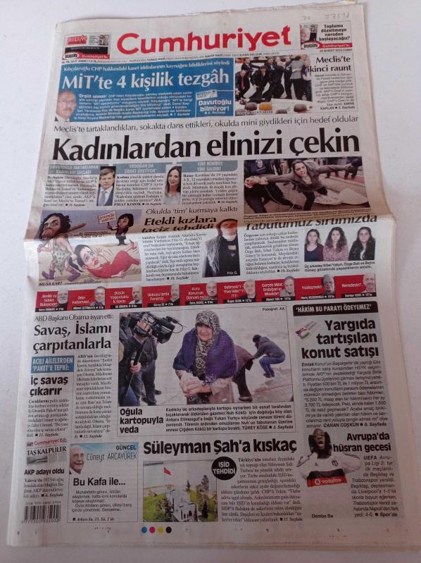 Cumhuriyet Gazetesi - 20 Şubat 2015 - Galatasaray Başkanı Duygun Yarsuvat' Kadıköy'e Gitmek İstiyorum - Trabzonspor Avrupa'da Dağıldı - Feyenordlular Romayı Yaktı - Aldatma Rekoru Tayland'ın- Dirençli Bakteri Öldürdü - Bin Yıllık Batık Hazine - Mit'te 4 Kişilik Tezgah - Etekli Kızlara Taciz Tehdidi - Süleyman Şah'a Kıskaç adlı eser Türkçe dilindedir.