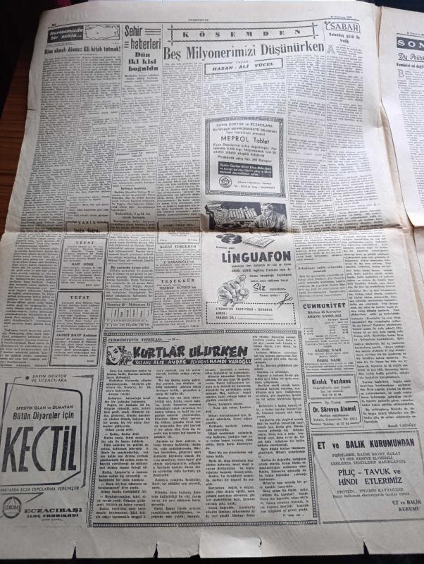 Cumhuriyet Gazetesi - 20 Temmuz 1959 - Geç Olsun Da Yazan Nadir Nadi Başmakale - Seçimlerin Tehiri Tasarıları Bugün Mecliste Görüşülüyor - Ordu Yapı Kooperatifleri Şikayet Konusu Oluyor - Eyüp Demokrat Parti Kongresinde İki Delege Arasında Bir Tartışma Fotoğrafı - Kartal Leylek Savaşı - Ankara Sümerbank İşçileri kongresini Polis Dağıttı - Dışişleri Bakanı Fatin Rüştü Zorlu Cenevre'den Döndü - Otelli Otobüs Fotoğrafı - Kıbrıs'taki İngiliz Askerleri Çekiliyor - Haritamızda Bir Nokta Yazan Fakir Baykurt Yazı - Beş Milyonerimizi Düşünürken Yazan Hasan Ali Yücel - Komünist Mi Değil Mi Yazan Ömer Sami Coşar - Ford Tesisi Ankara Üniversitesine Bağış Yaptı - Pazartesi Konuşmaları Yazan Bedri Rahmi Eyüboğlu - Bay Oscar Karikatür- Ruslar Anna Karenin'i Çevirecekler - Uluç Ali Yazan Halikarnas Balıkçısı Yazı Dizisi - İstanbul Ankara Radyosu Programı - Yesari Asımın En Son Şaheserleri - Galatasaray Adası Yelken Yarışları Güzel Geçti - Gündüz Kılıç Feriköy Antrenörü Oldu - Aycan Önel Rekor Kırdı, Yunus Nadi tarafından kaleme alınmıştır. Cumhuriyet Gazetesi - 20 Temmuz 1959 - Geç Olsun Da Yazan Nadir Nadi Başmakale - Seçimlerin Tehiri Tasarıları Bugün Mecliste Görüşülüyor - Ordu Yapı Kooperatifleri Şikayet Konusu Oluyor - Eyüp Demokrat Parti Kongresinde İki Delege Arasında Bir Tartışma Fotoğrafı - Kartal Leylek Savaşı - Ankara Sümerbank İşçileri kongresini Polis Dağıttı - Dışişleri Bakanı Fatin Rüştü Zorlu Cenevre'den Döndü - Otelli Otobüs Fotoğrafı - Kıbrıs'taki İngiliz Askerleri Çekiliyor - Haritamızda Bir Nokta Yazan Fakir Baykurt Yazı - Beş Milyonerimizi Düşünürken Yazan Hasan Ali Yücel - Komünist Mi Değil Mi Yazan Ömer Sami Coşar - Ford Tesisi Ankara Üniversitesine Bağış Yaptı - Pazartesi Konuşmaları Yazan Bedri Rahmi Eyüboğlu - Bay Oscar Karikatür- Ruslar Anna Karenin'i Çevirecekler - Uluç Ali Yazan Halikarnas Balıkçısı Yazı Dizisi - İstanbul Ankara Radyosu Programı - Yesari Asımın En Son Şaheserleri - Galatasaray Adası Yelken Yarışları Güzel Geçti - Gündüz Kılıç Feriköy Antrenörü Oldu - Aycan Önel Rekor Kırdı adlı eser Türkçe dilindedir.
