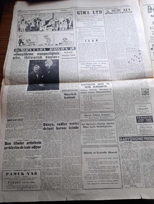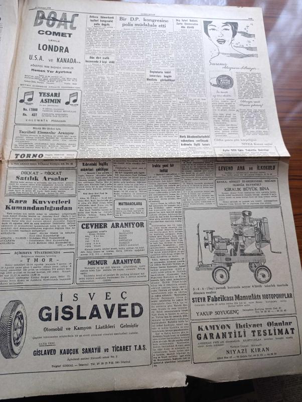 Cumhuriyet Gazetesi - 20 Temmuz 1959 - Geç Olsun Da Yazan Nadir Nadi Başmakale - Seçimlerin Tehiri Tasarıları Bugün Mecliste Görüşülüyor - Ordu Yapı Kooperatifleri Şikayet Konusu Oluyor - Eyüp Demokrat Parti Kongresinde İki Delege Arasında Bir Tartışma Fotoğrafı - Kartal Leylek Savaşı - Ankara Sümerbank İşçileri kongresini Polis Dağıttı - Dışişleri Bakanı Fatin Rüştü Zorlu Cenevre'den Döndü - Otelli Otobüs Fotoğrafı - Kıbrıs'taki İngiliz Askerleri Çekiliyor - Haritamızda Bir Nokta Yazan Fakir Baykurt Yazı - Beş Milyonerimizi Düşünürken Yazan Hasan Ali Yücel - Komünist Mi Değil Mi Yazan Ömer Sami Coşar - Ford Tesisi Ankara Üniversitesine Bağış Yaptı - Pazartesi Konuşmaları Yazan Bedri Rahmi Eyüboğlu - Bay Oscar Karikatür- Ruslar Anna Karenin'i Çevirecekler - Uluç Ali Yazan Halikarnas Balıkçısı Yazı Dizisi - İstanbul Ankara Radyosu Programı - Yesari Asımın En Son Şaheserleri - Galatasaray Adası Yelken Yarışları Güzel Geçti - Gündüz Kılıç Feriköy Antrenörü Oldu - Aycan Önel Rekor Kırdı adlı eser, Kitap > Süreli Yayınlar > Gazeteler > Türkiye > Genel > Günlük kategorisinde İkinci El olarak satıştadır.