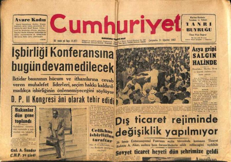 Cumhuriyet Gazetesi 21 Ağustos 1957 - Asya Gribi Salgın Halinde GZ83505, en son 20 gün önce güncellenmiştir.