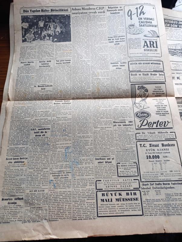 Cumhuriyet Gazetesi - 21 Aralık 1953 - Harp Sanayimizin inkişafı Köşe Yazısı - Yeni Petrol Kanunu Tasarısı Hazırlandı - Fransa'da Cumhurbaşkanı Seçilemiyor - Adnan Menderes CHP Neşriyatına Cevap Verdi - Milli Takım Namzetleri Dün Brezilyanın Cruzeiro Takımı İle Yaptığı Maçı 3 1 Kazanmıştır - İran'da Doktor Musaddık Hakkında Karar - Cüzamlı Kadın Yazan Guy Des Cars Yazı Dizisi - Büyük Atatürk İçin Okutturulan Mevlid - Allah Taksimi Yazan Burhan Felek Köşe Yazısı - Akbank - Çukurova Takım Koşusu - Milli Maça Dair Futbol Federasyonu Başkanı Orhan Şeref Apak'ın Beyanatı - Danimarka Beşiktaş Maçı Ankara'da Yapılacak - Şöhret Fabrikatörü Guido Orlando Yazı Dizisi - Krem Pertev - Vita Yağ - Siemens Alman Radyoları - Rally Traş Makinesi adlı eser, Kitap > Süreli Yayınlar > Gazeteler > Türkiye > Genel > Günlük kategorisinde İkinci El olarak satıştadır.