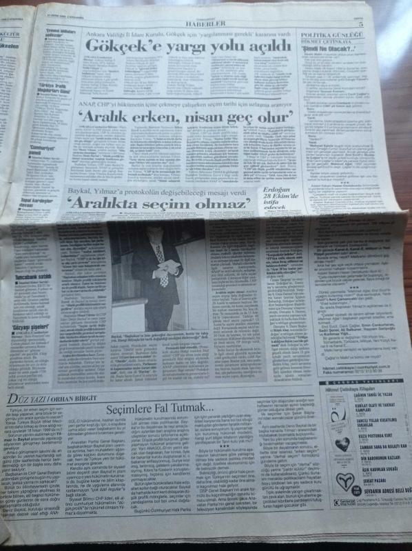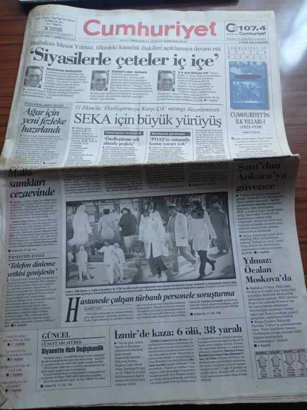 Cumhuriyet Gazetesi - 21 Ekim 1998 - Başbakan Mesut Yılmaz Ülkedeki Karanlık İlişkileri Açıklamaya Devam Etti - Siyasilerle Çeteler İç İçe - SEKA İçin Büyük Yürüyüş - Mehmet Ağar İçin Yeni Fezleke Hazırlandı - Nesim Malki Sanıkları Cezaevinde - Emniyetin İsteği Telefon Dinleme Yetkisi Genişlesin - Başbakan Mesut Yılmaz Abdullah Öcalan Moskova'da - POAŞ'ın Satışında Kamu Yararı Yok adlı eser Türkçe dilindedir.