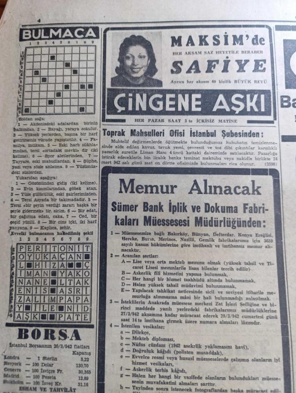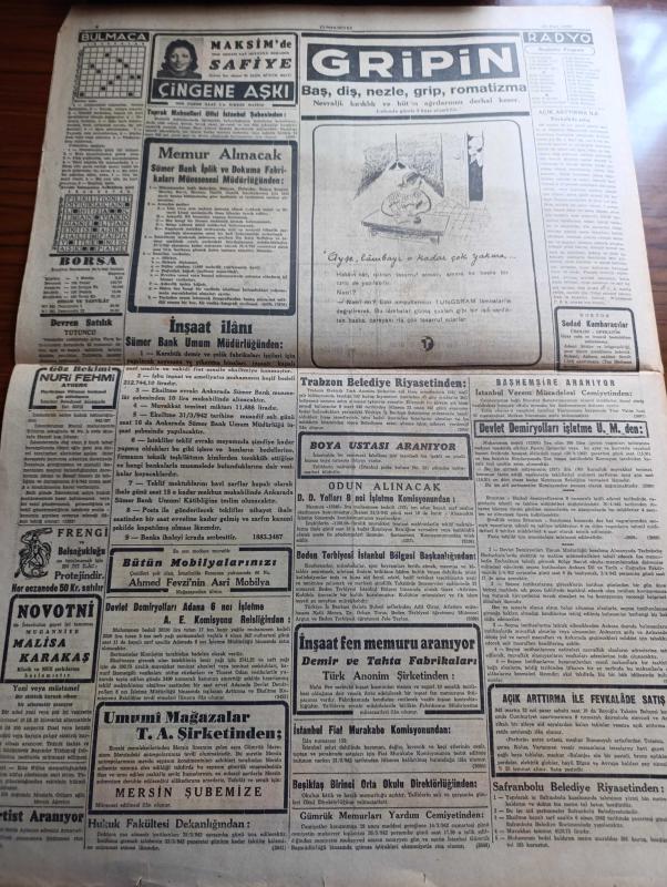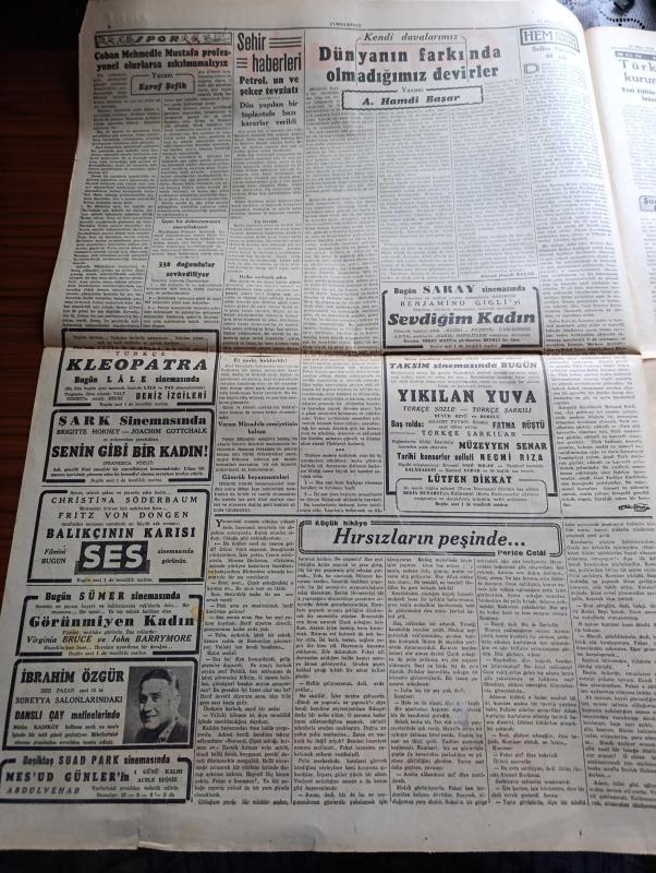 Cumhuriyet Gazetesi - 21 Mart 1942 - yarınki Avrupa'nın müşkülatı Cumhuriyet Başmakale - milli şefimiz İsmet İnönü İstanbul'u şereflendirdiler - Milli Şef İsmet İnönü'nün İstanbul'u teşriflerinden intibalar fotoğraflar - Şehzadebaşı'nda bin yataklı talebe yurdunun inşasına başlanıyor - Berlin büyükelçimiz Hüsrev Gerede Dün Almanya'dan geldi - Tas ajansının uzun bir tekstili İran Azerbaycanının ilhakı Rus kıtalarının Cenuba yürüdükleri yalan - şark cephesi harekatı leningrad müdafileri taarruza geçti - Japon harp tebliği İtalya'ya göre iki Japon filosu ve gemi kafileleri asker ihraç etmek üzereler - Japon donanmasından toplu manzaralar - Kızıl bir Alman tayyaresi karlı ovaya İniş yapmak üzere fotoğraf - İbrahim Özgür Süreyya salonlarındaki danslı çay matinelerinde - yıkılan yuva filmi Taksim sinemasında - çoban mehmet'le Mustafa profesyonel olurlarsa sıkılmamalıyız yazan Eşref Şefik - küçük hikaye hırsızların peşinde yazan Peride Celal - Türk coğrafya Kurumu tesis edildi - Anıtkabir adlı eser, Kitap > Süreli Yayınlar > Gazeteler > Türkiye > Genel > Günlük kategorisinde İkinci El olarak satıştadır.
