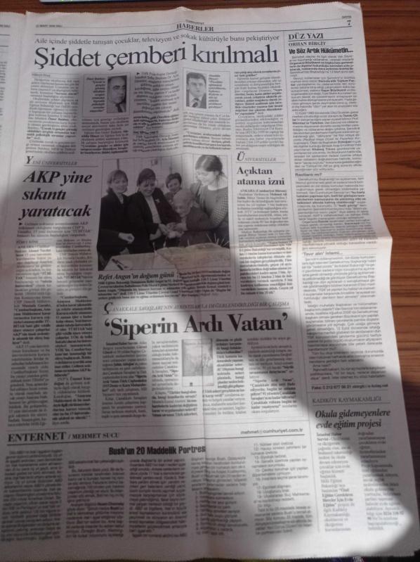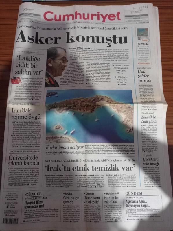 Cumhuriyet Gazetesi - 21 Mart 2006 - Hakemler Depresyona Girdi - Dünya Şiir Günü Usta Şairler Yürüyor - Pentagon Danışmanı Laikliğe Ciddi Bir Saldırı Var - Asker Konuştu - Genelkurmay Açıklamasının Tam Metni - Çocuklara Seks Tuzağı - Merkez Bankası Üyesi İran'daki Rejime Övgü - Recep Tayyip Erdoğan Polemiğe Girmeyin - Irak'ta Etnik Temizlik Var adlı eser Türkçe dilindedir.
