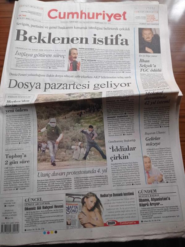 Cumhuriyet Gazetesi - 21 Şubat 2009 - Mehmet Sevigen'den Beklenen İstifa - İlhan Selçuk'a Türkiye Gazeteciler Cemiyeti Ödülü - Deniz Feneri Yolsuzluğuna İlişkin Dosya Nihayet Yola Çıkarken AKP Hükümetini Telaş Sardı - Merkez Bankası'ndan Dövize Yeni Önlem - Batı Şeria'da Utanç Duvarı Protestosunda 4. Yıl - Molotof Davasında 42 Yıl İstemi - Recep Tayyip Erdoğan'ın Sınıf Arkadaşına Aracılık adlı eser Türkçe dilindedir.