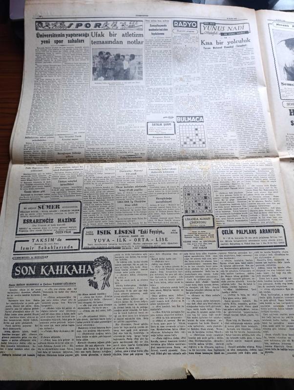 Cumhuriyet Gazetesi - 22 Eylül 1953 - Trakya'da Yapılacak Büyük Manevralar - Adalet Bakanı Osman Şevki Çiçekdağın Dünkü Tetkik Ve Ziyaretleri - Hasan Polatkan Amerika'daki Temaslarında Memnun Fotoğraf - Türk Basınının Büyük Kaybı Necmettin Sadak Vefat Etti - Kasım İşçiler İçin Doğum İstirahati 6 Haftadan 9 Haftaya Çıkarılacak - Beria'nın Rusya'dan Firar Edip Etmediği Belli Değil - Beyaz Köşkte Oturanlar Yazan Rikkat Köknar Yazı Dizisi - Surp Agop Hastanesi'nin Temeli Bugün Atılıyor - Tarihi Şahsiyetlerimizin Kıymetli Portreleri Yazan Haluk Y. Şehsuvaroğlu - 90 Bin Bıçak Yazan Burhan Felek Köşe Yazısı - Atom Silahlarının Yasal İlan Edilmesi - Beyoğluspor Selaniğe Gidiyor - Son Kahkaha Yazan Edison Marshall Yazı Dizisi - 1953 1954 Yunus Nadi Mükafatı En Güzel Hikaye Kısa Bir Yolculuk Yazan Mehmet Ekmekçi - Dünyanın 7 Garibesinden Biri Halikarnas Balıkçısı - Resimli Romanımız Bolo Paşa Vakası Yazan Pierre Gordeaux Yazı Dizisi - Pathe'nin Yeni Zaferi Sesli Sinemaya Makinesi, Yunus Nadi tarafından kaleme alınmıştır. Cumhuriyet Gazetesi - 22 Eylül 1953 - Trakya'da Yapılacak Büyük Manevralar - Adalet Bakanı Osman Şevki Çiçekdağın Dünkü Tetkik Ve Ziyaretleri - Hasan Polatkan Amerika'daki Temaslarında Memnun Fotoğraf - Türk Basınının Büyük Kaybı Necmettin Sadak Vefat Etti - Kasım İşçiler İçin Doğum İstirahati 6 Haftadan 9 Haftaya Çıkarılacak - Beria'nın Rusya'dan Firar Edip Etmediği Belli Değil - Beyaz Köşkte Oturanlar Yazan Rikkat Köknar Yazı Dizisi - Surp Agop Hastanesi'nin Temeli Bugün Atılıyor - Tarihi Şahsiyetlerimizin Kıymetli Portreleri Yazan Haluk Y. Şehsuvaroğlu - 90 Bin Bıçak Yazan Burhan Felek Köşe Yazısı - Atom Silahlarının Yasal İlan Edilmesi - Beyoğluspor Selaniğe Gidiyor - Son Kahkaha Yazan Edison Marshall Yazı Dizisi - 1953 1954 Yunus Nadi Mükafatı En Güzel Hikaye Kısa Bir Yolculuk Yazan Mehmet Ekmekçi - Dünyanın 7 Garibesinden Biri Halikarnas Balıkçısı - Resimli Romanımız Bolo Paşa Vakası Yazan Pierre Gordeaux Yazı Dizisi - Pathe'nin Yeni Zaferi Sesli Sinemaya Makinesi adlı eser Türkçe dilindedir.