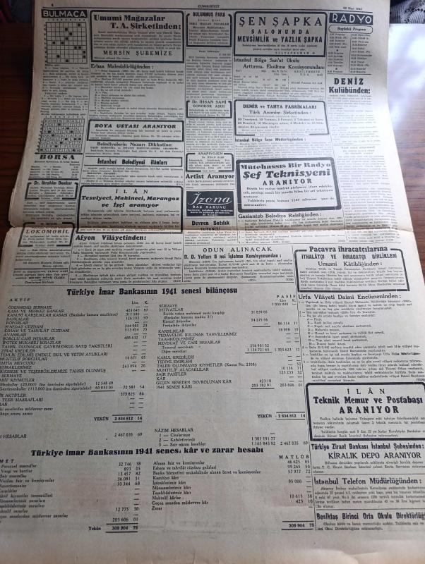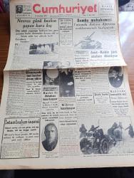 Cumhuriyet Gazetesi - 22 Mart 1942 - Cevapsız Sualler Cumhuriyet Başmakale - Nevruz günü baskı yapan kara kış - karlar altında kalan Galata köprüsü'nün görünüşü - Japon harp tebliği birmanya'da ileri hareket devam ediyor - Amerika'nın muhtelif cephelere sevk ettiği son sistem ağır tanklardan fotoğraf - bomba muhakemesi 1 Nisan'da Ankara ağırceza mahkemesinde başlayacak - Anıtkabir jüri azaları dönüyor - Mısır başvekili Nahas Paşaya bir talebe kurşun attı başvekile bir şey olmadı - şark cephesinden resimler - Taksim sinemasında bugün yıkılan yuva başrolde Fatma Rüştü - arjantina filmi Melek sinemasında - Spengler'in felsefesi yazan Ziyaeddin Fahri - Milli korunma mahkemesi Dün ilk kararını verdi - sızı yazan Mükerrem Kamil Su Yazı Dizisi - bugün Edirne'de yapılacak kır koşusu - Erna Sack'ın Bugünkü Konseri - Şen Şapka Sultanhamamda - bugünkü radyo programı - izona saç sabunu - borsa adlı eser, Kitap > Süreli Yayınlar > Gazeteler > Türkiye > Genel > Günlük kategorisinde İkinci El olarak satıştadır.