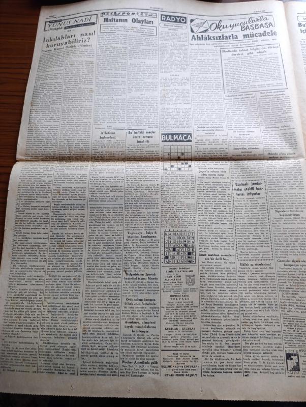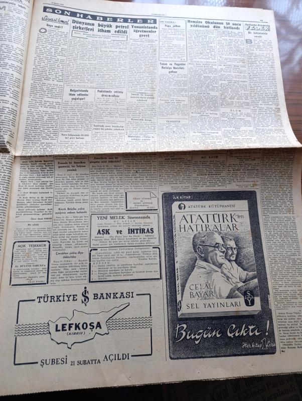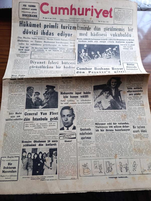 Cumhuriyet Gazetesi - 22 Şubat 1955 - Hükümet Primli Turizm Dövizi İgdaş Ediyor - İzmirde Dün Görülmemiş Bir Med Hadisesi Vukubuldu - Celal Bayar Ve Eşi Pakistan Genel Valisi Gulam Muhammed'in Karaşi'de Verdiği Bir Ziyafette Fotoğraf - Gazeteciliği Şah Olmaya Tercih Eden İran Tahtının Varisi Prens Ali Fotoğrafı - General Van Fleet Dün İstanbul'a Geldi - Hemşire Okulunun 30. Yıldönümü Kutlandı Fotoğraf - İkinci Elektrik Santrali Yer Altında Kurulacak - Sisli Ufuklar Yazan Taylor Caldwell Yazı Dizisi - Bir Hekimimizin Cevabı Yazan Burhan Felek Köşe Yazısı - Bu Haftaki Maçlar Devre Sonuna Bırakıldı - 1954 1955 Yunus Nadi Mükafatı En Güzel Fikir Yazısı - Ordu Takımı Kampına İltihak Eden Futbolcular - Avare Filmi Sümer Sinemasında - Bir Bekarın Sevgilileri Yazan Maurice Dekobra Yazı Dizisi - Günün Resimleri - Resimli Roman Gangsterler Yatağı Yazan George Simenon - Otomobille Maça Çıkış Fotoğraf - Milano'nun Savoy Otelinde 26 Ressam Gina Lollobrigida'nın Resimlerini Yapıyor Fotoğraf - Shell adlı eser, Kitap > Süreli Yayınlar > Gazeteler > Türkiye > Genel > Günlük kategorisinde İkinci El olarak satıştadır.