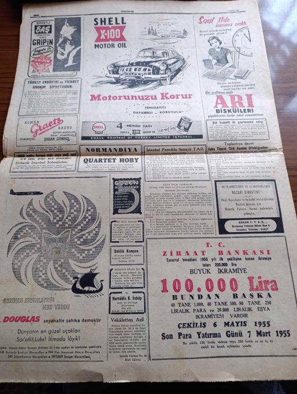 Cumhuriyet Gazetesi - 22 Şubat 1955 - Hükümet Primli Turizm Dövizi İgdaş Ediyor - İzmirde Dün Görülmemiş Bir Med Hadisesi Vukubuldu - Celal Bayar Ve Eşi Pakistan Genel Valisi Gulam Muhammed'in Karaşi'de Verdiği Bir Ziyafette Fotoğraf - Gazeteciliği Şah Olmaya Tercih Eden İran Tahtının Varisi Prens Ali Fotoğrafı - General Van Fleet Dün İstanbul'a Geldi - Hemşire Okulunun 30. Yıldönümü Kutlandı Fotoğraf - İkinci Elektrik Santrali Yer Altında Kurulacak - Sisli Ufuklar Yazan Taylor Caldwell Yazı Dizisi - Bir Hekimimizin Cevabı Yazan Burhan Felek Köşe Yazısı - Bu Haftaki Maçlar Devre Sonuna Bırakıldı - 1954 1955 Yunus Nadi Mükafatı En Güzel Fikir Yazısı - Ordu Takımı Kampına İltihak Eden Futbolcular - Avare Filmi Sümer Sinemasında - Bir Bekarın Sevgilileri Yazan Maurice Dekobra Yazı Dizisi - Günün Resimleri - Resimli Roman Gangsterler Yatağı Yazan George Simenon - Otomobille Maça Çıkış Fotoğraf - Milano'nun Savoy Otelinde 26 Ressam Gina Lollobrigida'nın Resimlerini Yapıyor Fotoğraf - Shell, Yunus Nadi tarafından kaleme alınmıştır. Cumhuriyet Gazetesi - 22 Şubat 1955 - Hükümet Primli Turizm Dövizi İgdaş Ediyor - İzmirde Dün Görülmemiş Bir Med Hadisesi Vukubuldu - Celal Bayar Ve Eşi Pakistan Genel Valisi Gulam Muhammed'in Karaşi'de Verdiği Bir Ziyafette Fotoğraf - Gazeteciliği Şah Olmaya Tercih Eden İran Tahtının Varisi Prens Ali Fotoğrafı - General Van Fleet Dün İstanbul'a Geldi - Hemşire Okulunun 30. Yıldönümü Kutlandı Fotoğraf - İkinci Elektrik Santrali Yer Altında Kurulacak - Sisli Ufuklar Yazan Taylor Caldwell Yazı Dizisi - Bir Hekimimizin Cevabı Yazan Burhan Felek Köşe Yazısı - Bu Haftaki Maçlar Devre Sonuna Bırakıldı - 1954 1955 Yunus Nadi Mükafatı En Güzel Fikir Yazısı - Ordu Takımı Kampına İltihak Eden Futbolcular - Avare Filmi Sümer Sinemasında - Bir Bekarın Sevgilileri Yazan Maurice Dekobra Yazı Dizisi - Günün Resimleri - Resimli Roman Gangsterler Yatağı Yazan George Simenon - Otomobille Maça Çıkış Fotoğraf - Milano'nun Savoy Otelinde 26 Ressam Gina Lollobrigida'nın Resimlerini Yapıyor Fotoğraf - Shell adlı eser Türkçe dilindedir.
