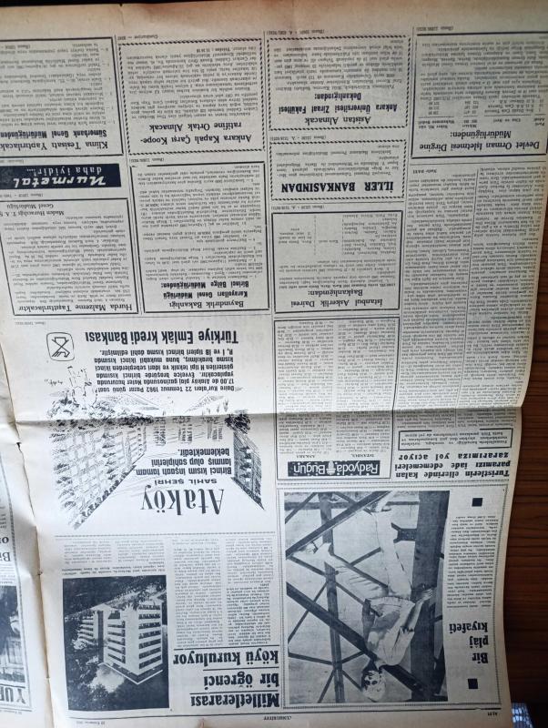 Sayfa Boyutu : 42*58 cm Sayfa Sayısı: 8 Cumhuriyet Gazetesi Yıpranma, sararmalar, kupon kesiği ve yırtılmalar zamana bağlı olarak görülebilir Not: Cilt Çıkmasıdır Bilgilendirme : Tam takım gazetedir