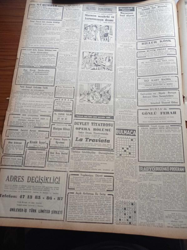 Cumhuriyet Gazetesi - 23 Şubat 1957 - Birleşmiş Milletler Kıbrıs İçin Kararını Verdi - Mecliste Osman Bölükbaşı Namık Gedik Düellosu - Amerikan Başkanı Eisenhower İsrail'e Teessüf Etti - Reisicumhur Celal Bayar Dün Ankara Silah Fabrikasını Gezdi - Ordinaryüs Profesör Sadri Maksudi Toprağa Verildi - Türk Yunan Delegeleri Arasında Tartışmalar - Amerika'da Türkiye'ye Dair İlmi Bir Konferans Toplandı - İdam Sehpasında Can Veren Devletliler Yazı Dizisi - Konservatuar Tiyatro Bölümü Elektra'yı Temsil Edecek - Burhan Felek - İngiliz Kraliçesi Elizabeth Kocasını Prens Yaptı - Resimli Romanımız Mormon Mezhebi Ve Kurucusunun Dramı - İç Çamaşırı Koklamaya Meraklı Hırsız Necati Macid - Spor Ve Sergi Sarayında Dünya Şampiyonlarından Adil Atan'ın Gecesi - Dansöz Ayşe Nana- Dünya Ordulararası Futbol Şampiyonası - İtalyan Ordu Takımı Dün Akşam İzmir'e Geldi - İstanbulspor Adalet Karşılaşıyor adlı eser, Kitap > Süreli Yayınlar > Gazeteler > Türkiye > Genel > Günlük kategorisinde İkinci El olarak satıştadır.