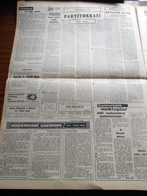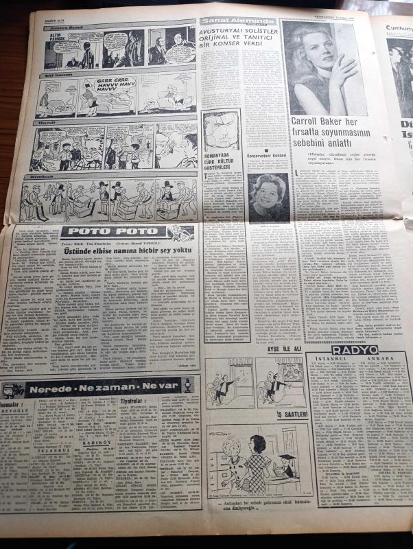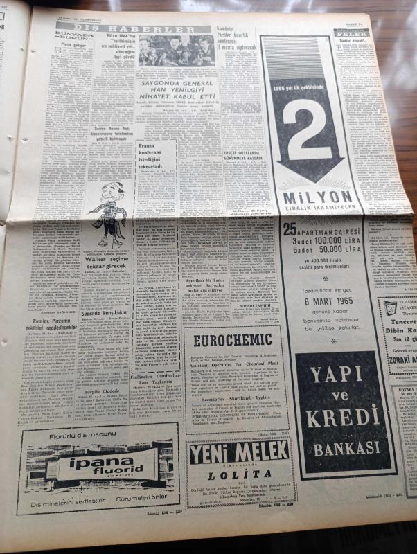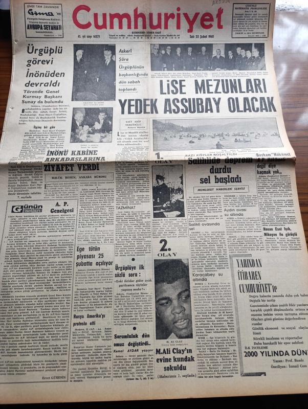 Cumhuriyet Gazetesi - 23 Şubat 1965 - Günün Notları Yazan Ecvet Güresin Köşe Yazısı - Suat Ürgüplü Görevi İsmet İnönü'den Devraldı Fotoğraf - İsmet İnönü Kabine Arkadaşlarına Ziyafet Verdi - Lise Mezunları Yedek Assubay Olacak - Salihli'de Deprem Durdu Sel Başladı - CHP Genel Sekreter Yardımcısı Suphi Baykam Hükümet AP Hükümeti Değil Diye Kaçmak Yok - Dünya Boks Şampiyonu Muhammed Ali Clay'ın Evine Kundak Sokuldu - Laf Değil Realite Yazan İlhan Selçuk Köşe Yazısı - Bozkırdaki Çekirdek Yazan Kemal Tahir Yazı Dizisi - Burhan Felek Köşe - Saygonda General Han Yenilgiyi Nihayet Kabul Etti - Ay'a İnsan Göndermek Tehlikeli Mi Olacak - Malkoçoğlu Konu Ve Resim Ayhan Başoğlu - Poto Poto Yazan Erich Von Strocheim Yazı Dizisi - Carroll Baker Her Fırsatta Soyunmasının Sebebini Anlattı - James Bond Çizgi Roman - Trabzon İdmanyurdu'nun Galibiyeti Trabzon'da Halkı Sokaklara Döktü - Puppo Sandro'ya Göre Futbol Yalnız Anadolu'da İlerliyor - 1962 Dünya Kupasını 1 Numaralı Kalecisi Çek Schroif, Yunus Nadi tarafından kaleme alınmıştır. Cumhuriyet Gazetesi - 23 Şubat 1965 - Günün Notları Yazan Ecvet Güresin Köşe Yazısı - Suat Ürgüplü Görevi İsmet İnönü'den Devraldı Fotoğraf - İsmet İnönü Kabine Arkadaşlarına Ziyafet Verdi - Lise Mezunları Yedek Assubay Olacak - Salihli'de Deprem Durdu Sel Başladı - CHP Genel Sekreter Yardımcısı Suphi Baykam Hükümet AP Hükümeti Değil Diye Kaçmak Yok - Dünya Boks Şampiyonu Muhammed Ali Clay'ın Evine Kundak Sokuldu - Laf Değil Realite Yazan İlhan Selçuk Köşe Yazısı - Bozkırdaki Çekirdek Yazan Kemal Tahir Yazı Dizisi - Burhan Felek Köşe - Saygonda General Han Yenilgiyi Nihayet Kabul Etti - Ay'a İnsan Göndermek Tehlikeli Mi Olacak - Malkoçoğlu Konu Ve Resim Ayhan Başoğlu - Poto Poto Yazan Erich Von Strocheim Yazı Dizisi - Carroll Baker Her Fırsatta Soyunmasının Sebebini Anlattı - James Bond Çizgi Roman - Trabzon İdmanyurdu'nun Galibiyeti Trabzon'da Halkı Sokaklara Döktü - Puppo Sandro'ya Göre Futbol Yalnız Anadolu'da İlerliyor - 1962 Dünya Kupasını 1 Numaralı Kalecisi Çek Schroif adlı eser Türkçe dilindedir.
