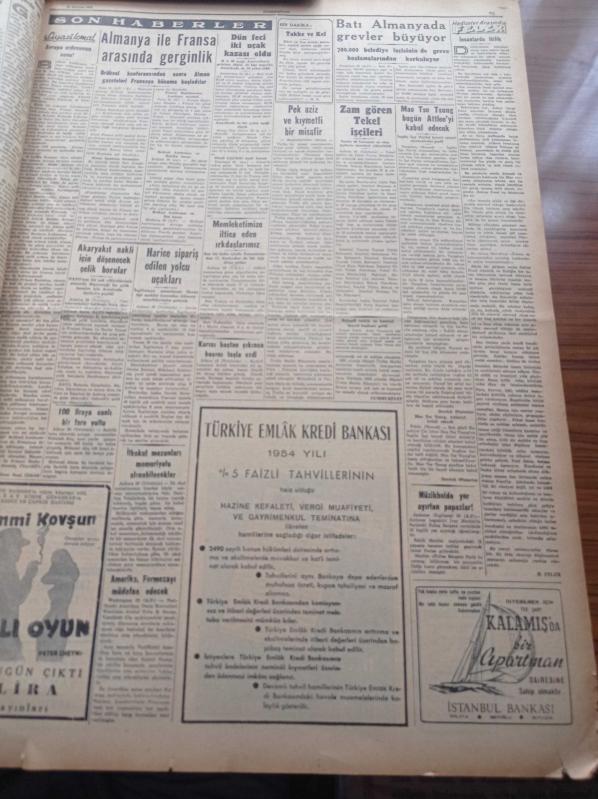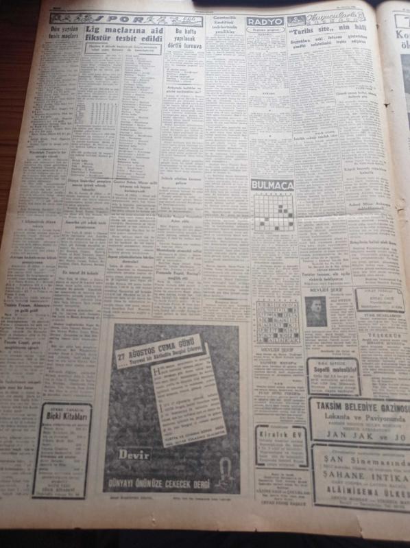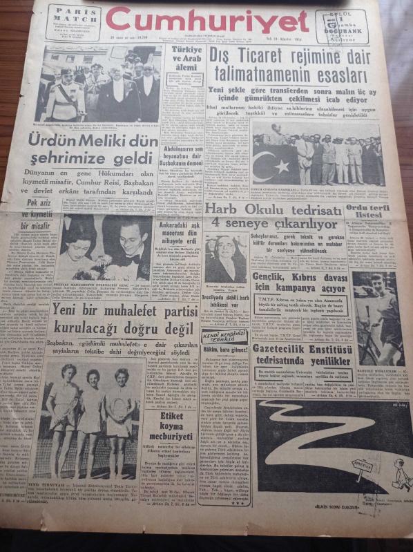 Cumhuriyet Gazetesi - 24 Ağustos 1954 - Ürdün Meliki Dün Şehrimize Geldi - Türkiye Ve Arab Alemi - Radyolu Bisikletler - Harb Okulu Tedrisatı 4 Seneye Çıkarılıyor - Torpido Filomuz ve Savarona Geldi - Mehmet Alıç 100 Liraya Canlı Bir Fare Yuttu - Mao Tse Tung Bugün Attlee'yi Kabul Edecek - Lig Maçlarına Aid Fikstür Tespit Edildi - Gustav Sebes Macar Milli Takımını Tek Başına Kuramayacak - Beyoğluspor - Askeri Müze Ankara'ya Nakledilmemeli - Rusya'da Halkın Hayatı Ölü Ruhlar Yazı Dizisi - Beynelmilel Portreler Charlie Chaplin - Şam Panayırı - Artist Joan Bennett - Resimli Romanımız Yeşil Saksı - Gençlik Kıbrıs Davası İçin Kampanya Açıyor- Arı Unları - Coldspot Buzdolabı - Kibar Sabunu - Arlon En İyi Saattir - Mom Çalar Saatleri adlı eser, Kitap > Süreli Yayınlar > Gazeteler > Türkiye > Genel > Günlük kategorisinde İkinci El olarak satıştadır.