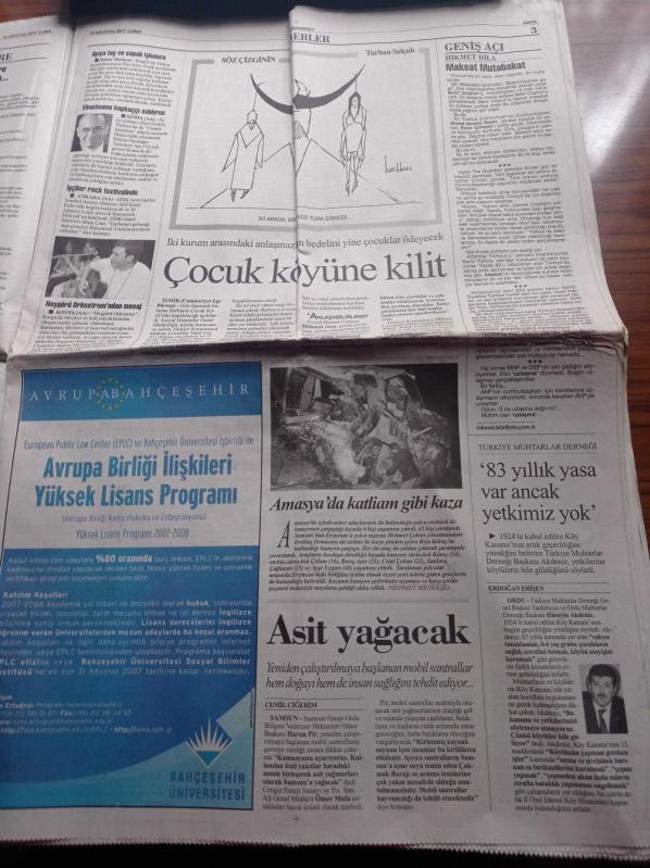 Cumhuriyet Gazetesi - 24 Ağustos 2007 - Fenerbahçe'de Appiah Bilmecesi - Fernando Alonso'dan Yarış Provası - Türbanlı Anayasa - AKP'ye 2 Misilleme - İran Ordusu Kuzey Irak'ta - Uçak Korsanları Hamas Yardım Ederdi - Açıkla Yusuf Halaçoğlu adlı eser, Kitap > Süreli Yayınlar > Gazeteler kategorisinde İkinci El olarak satıştadır.